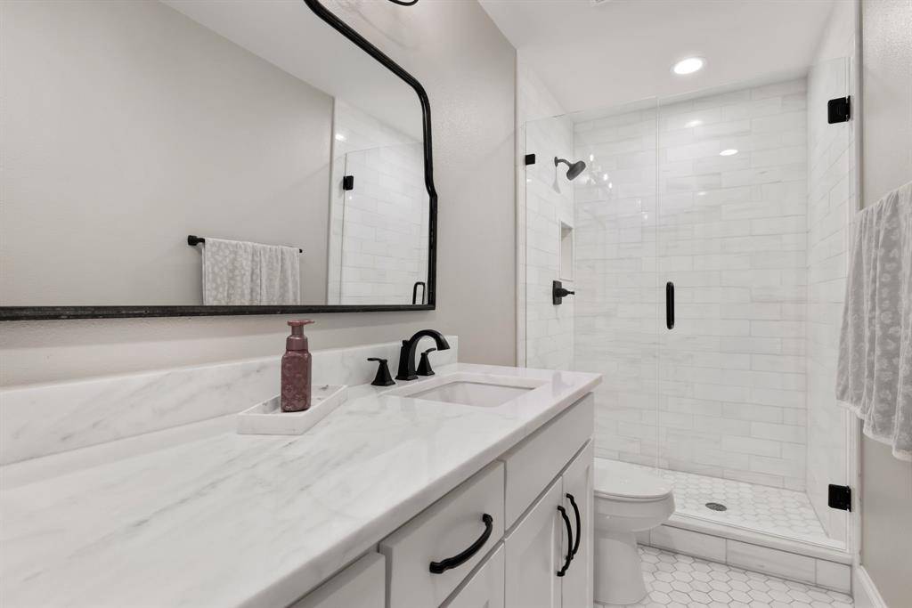 Nestled on a private 4-acre homesite, this completely remodeled modern farmhouse retreat blends timeless style with today's most desirable finishes. A grand entrance with brand-new iron double doors opens into a bright and inviting layout designed for effortless living and entertaining. The gourmet kitchen boasts an oversized eat-in quartz island, custom cabinetry, designer hand-laid tile backsplash, walk through panty, designer-series refrigerator, double ovens, and apron-front stainless sink. Warm hardwood flooring, designer lighting, and large windows allow natural light to fill the open living and dining spaces while framing views of the beautiful acreage. The privately located primary suite offers a spa-inspired bath with dual vanities, freestanding soaking tub, marble finishes, and a frameless shower with 3 shower heads. A dedicated study or family planning center, spacious secondary bedrooms, and an oversized upstairs bedroom with private bath and balcony provide flexible living options including multi-generational use. The large upstairs game room adds even more room to gather and play. Step outside to your personal resort — complete with a sparkling pool, expansive patio, lounging structures, and a fire pit area perfect for sunsets and stargazing. With plenty of space for future enhancements like a barn, sports court, or garden, the possibilities are endless.