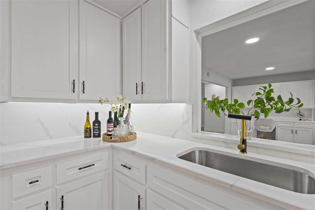 OPEN FEB 21, 1-3PM. WELCOME TO 1 SPRING VALLEY COURT, AN EXQUISITELY UPDATED 4 BEDROOM 3 FULL BATH HOME NESTLED IN A CUL DE SAC. Set on .32 ac lot this residence offers designed living spaces. The custom woodwork on the front exterior enhances the home's curb appeal. Step inside through the new front door to discover a remodeled interior, complete 2025. The culinary chef's kitchen boasts newly painted white cabinets, new SS appliances including 36” electric range, microwave+dishwasher. Create culinary delights on the stunning quartz countertops and enjoy your beverages at separate dry bar. The kitchen is adorned with a skylight+modern chandelier, cabinets with LED under mount lights+soft-close hinges+black gold hardware. The primary suite is a luxurious retreat, featuring a spa-inspired en-suite bath, freestanding black matte tub, floor to ceiling shower tiles, quartz countertops+double sink vanity+expansive mirror+new toilet+more. The bathroom is completed with dual showers+gold rainfall showerheads+digital temp reader and LED lit shower niches. The expansive walk-in closet system+bay windows enhance the primary bedroom's allure. 3 bedrooms offer versatile options for guests, home office, or game room. 2 additional full baths feature accent shower tiles+rainfall showerheads and LED lit niches. The living room+ dining area provide ample space for entertaining. The Living space features a fireplace with marble like accent wall. Flex space with built-in desk serves as ideal home office retreat. Upgrades include NEW roof+gutters, foundation repaired 2025+warranty+passing hydrostatic test, HVAC 2017+2023, new fence, doors, landscaping, fresh paint inside+out, LVP floors, recessed lights+chandelier, remodeled kitchen+baths 2025, USB outlets, ceiling fans, accent walls+many more. A Private backyard oasis with new turf+tile patio. Extended driveway leads to 2-car garage. Located near Hwys, Huffines Park+Duck Creek Golf Course, offering easy access to outdoor recreation.