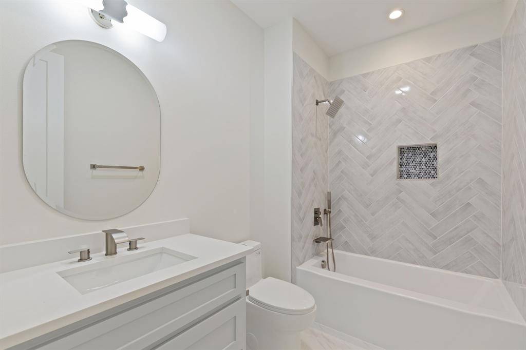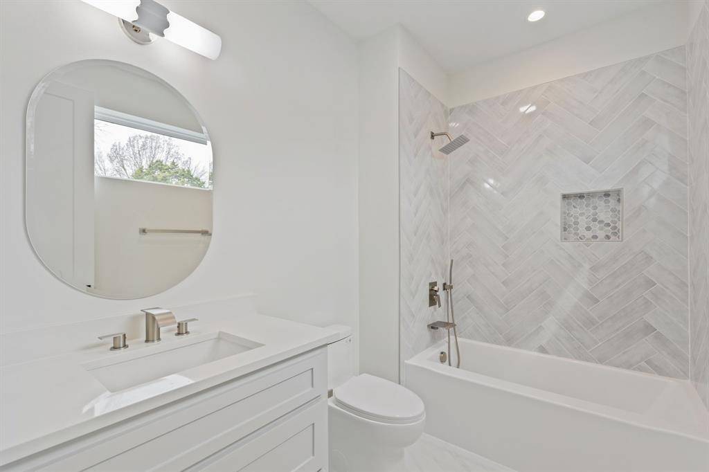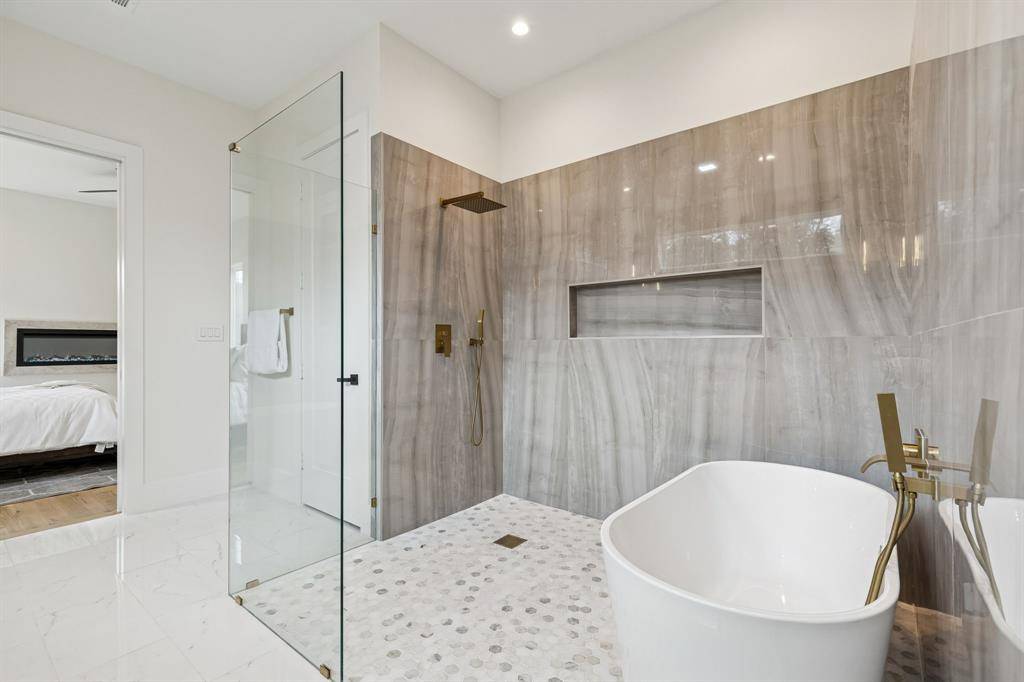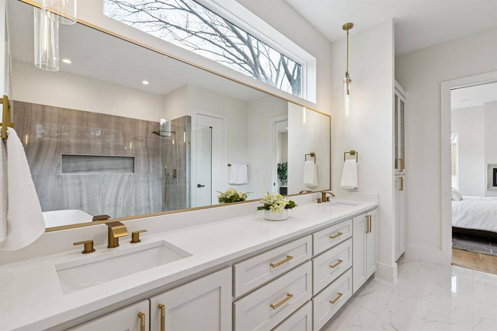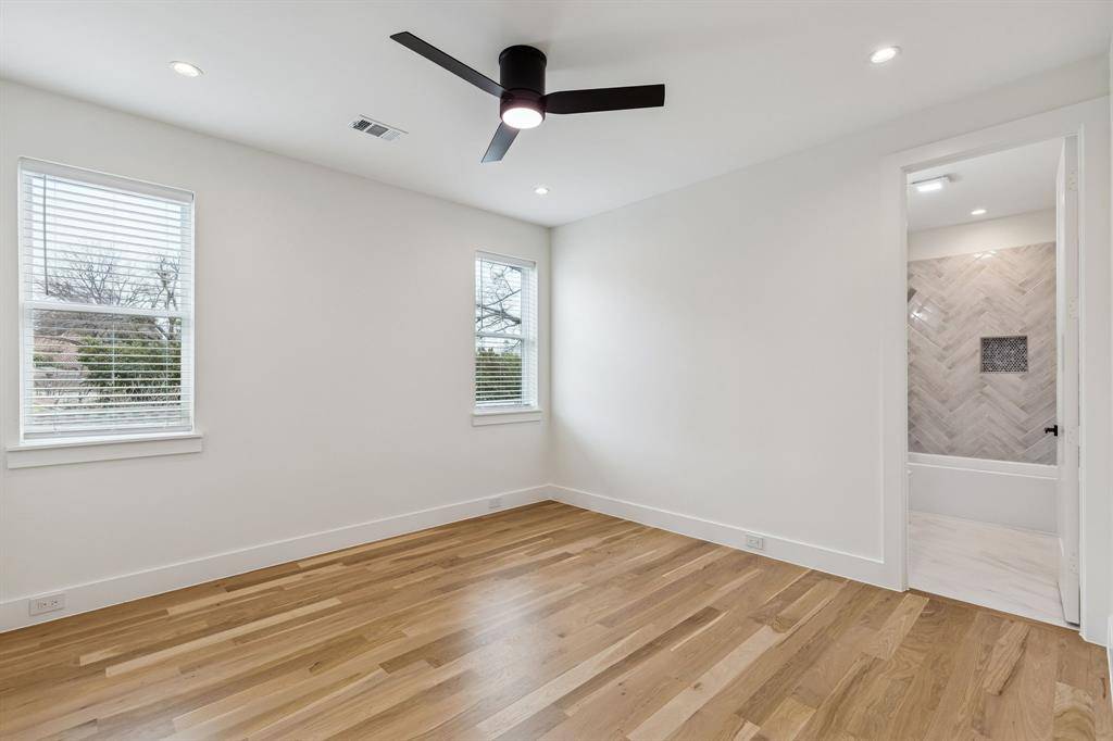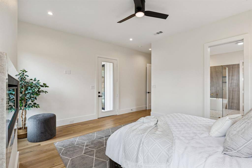 Elevated above the street in the heart of Bluffview, this brand-new, custom modern farmhouse strikes the perfect balance between high-end design and everyday comfort. An impressive 8' iron pivot door opens to a wide, light-filled foyer that immediately draws your eye to the lush greenery outdoors. This residence offers multiple living areas, including a versatile front flex room perfect for a home office, formal dining, or an additional den. Meticulously planned to maximize natural light, the interior features 20' vaulted ceilings, White Oak hardwoods, Taj Mahal Quartzite, and a dedicated wine room. The primary retreat is a true sanctuary, featuring its own electric fireplace and a custom-designed closet that conveniently connects directly to the laundry room. Every secondary bedroom also features its own private en-suite bath and spacious walk-in closet. The oversized, shaded backyard is a private oasis that backs directly to a greenbelt and the new city walking trail. Groundwork has already been completed for those looking to add a large-scale pool. Fully integrated with smart home automation for security and sound, this home offers a serene, Zen-inspired retreat just steps away from Dallas' premier dining and retail.