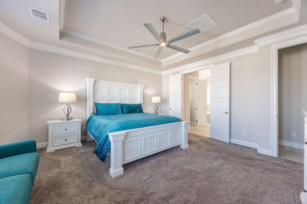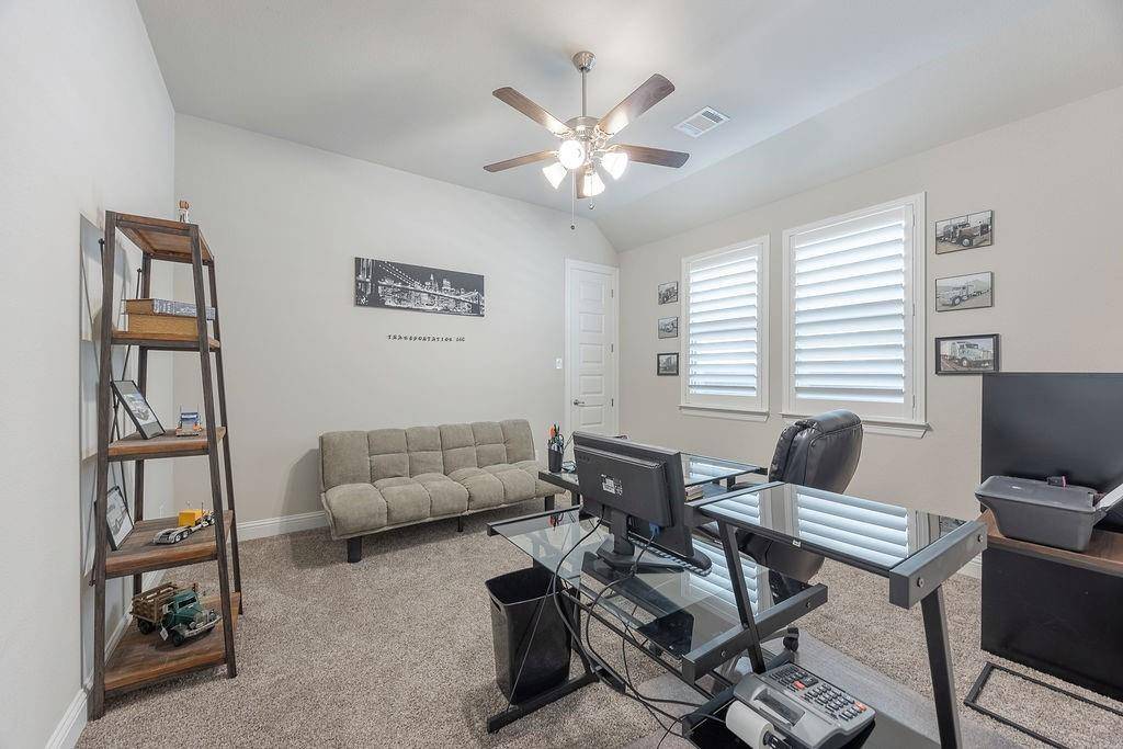 PRICED BELOW MARKET VALUE IN TRINITY FALLS! This beautiful and immaculate home is located in the much sought after master planned community of Trinity Falls. The community boast TWO community centers with pools, fitness center, splash pad, multiple playgrounds, 5 lakes for fishing and kayaking, disc golf course, 20+ miles of walking & biking trails and much more. The great outdoors is literally just outside your front door. Come and see your outdoor paradise home in nature. The community hosts over 100 events per year from food trucks and scavenger hunts to outdoor concerts. This 4-bedroom 3 full bath Chesmar built home has many luxury features that lend themselves to entertaining with friends or just relaxing with the family. This open floorplan has high vaulted ceilings, luxury crown molding, a 3-panel glass slider that opens to the extended cover back patio for a seamless transition from the living area to the patio. The large patio has two motorized shades for added privacy and protection from the weather, a fireplace with gas logs to take away the chill from a cool night. Every window has plantation shutters, the primary bedroom has bay windows, the utility room is large enough to accommodate a freezer, there's a whole house water-softner located in the 3-car garage. There's even a 6x8 tool shed in the back yard. If you like to get into the holiday spirit, the house comes with installed exterior lighting that outlines the silhouette of the house. This home offers a lifestyle that's a definite MUST come see.