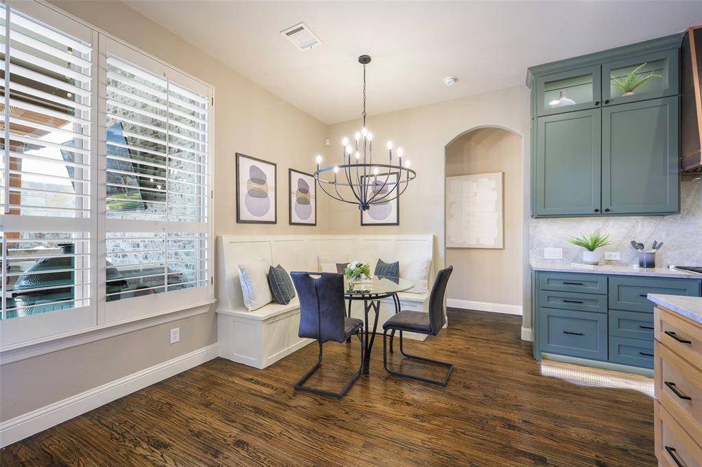 Located in Saddle Creek, one of Prosper's most desirable communities, this beautifully updated home blends timeless craftsmanship with modern upgrades designed for both everyday living and entertaining. The interior features hardwood floors, plantation shutters, designer lighting, and custom millwork that create a warm, refined atmosphere.