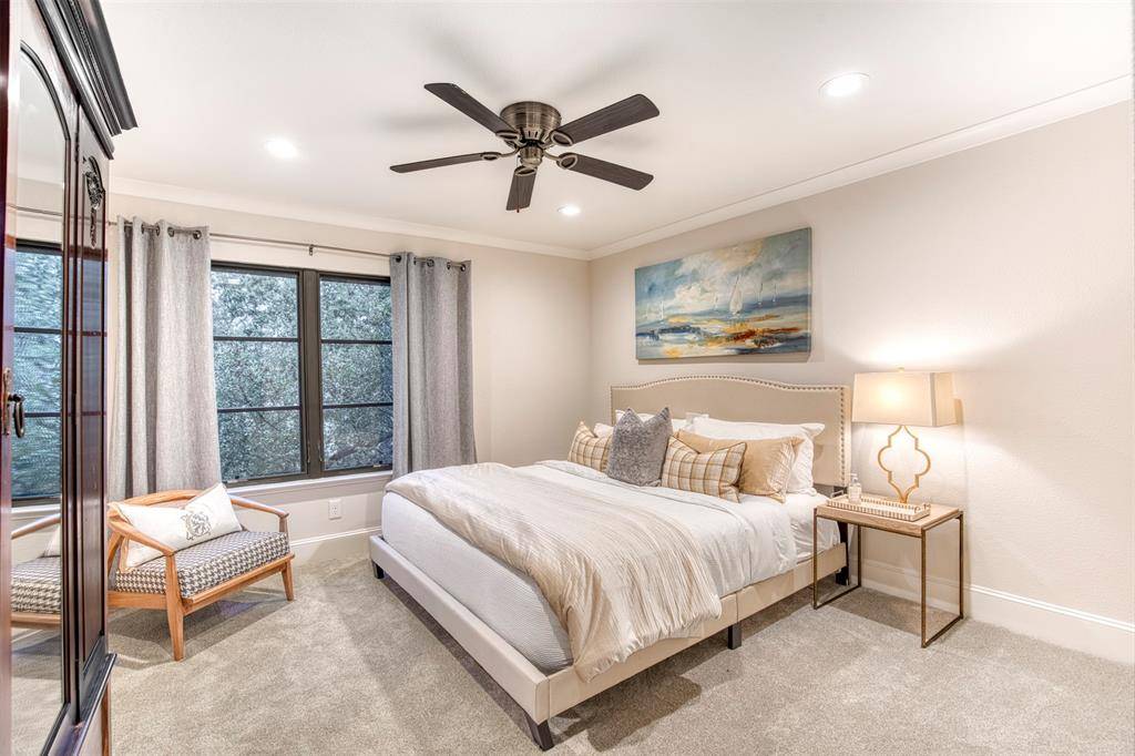 Located on the 16th fairway of Bent Tree Golf Course, 5929 Club Oaks Dr, is a North Dallas classic architecturally reimagined into a Texas Modern sanctuary following a complete 2018 renovation. Sprawling across a premier .37-acre lot, this masterpiece offers an unrivaled front-row seat to the Bent Tree transformation - a multi-million dollar championship course redesign by world-class architect Beau Welling. Your backyard is a living gallery overlooking the newly sculpted contours of the 16th fairway, where cleared underbrush has revealed tranquil water views, big Texas skies & vibrant Super Bent greens that will remain firm and fast year-round. Enjoy the golf cart lifestyle with a quick cruise to the new 68,000 sf Bent Tree Clubhouse. Enjoy a secluded covered patio fully equipped with a built-in gas grill, smoker, & prep sink. This outdoor living hub steps out to an expansive terrace with a elegant pool with water features & spa. Inside, the culinary kitchen is a dream designed by a talented host, featuring Calcutta Marble, Sub-Zero refrigeration & a professional-grade Wolf gas cooktop. The secret weapon is the scullery butler's pantry, complete with custom pull-outs, a secondary prep sink, and a dedicated Scotsman nugget ice maker. This gourmet hub flows seamlessly into dining & living areas designed for high-capacity hosting, anchored by a floor-to-ceiling brick gas-burning fireplace and custom elements for a comfortable luxe atmosphere. The layout features 3 bedrooms on the first floor, including a Primary Retreat with its own gas fireplace and a rare dual-bath configuration with a spa-grade steam oasis & heated floors. A versatile study serves as a perfect executive office or private gym. Upstairs, the spacious game room with wet bar, windows galore & balcony views. The 2nd level also hosts a private en-suite bedroom & a huge cedar-lined closet for seasonal storage. Zoned for Dallas ISD & minutes from private schools like Shelton, TCA, Parish & Greenhill.