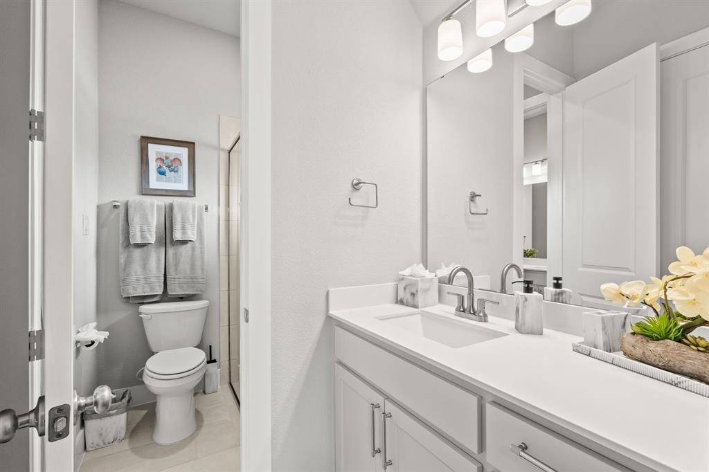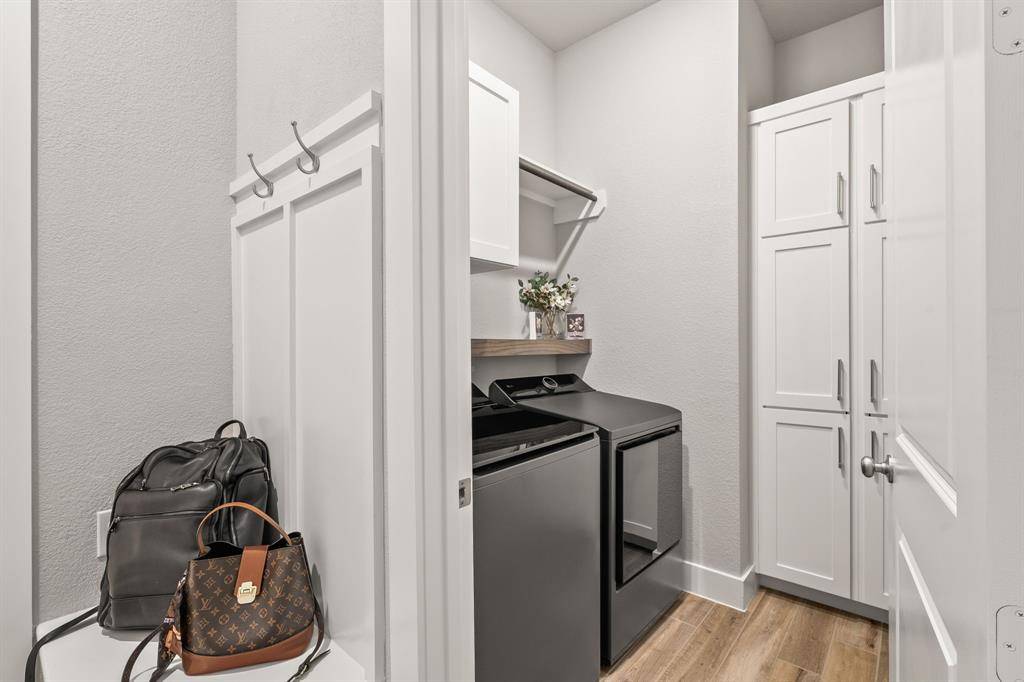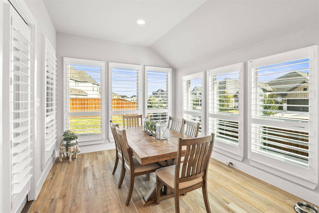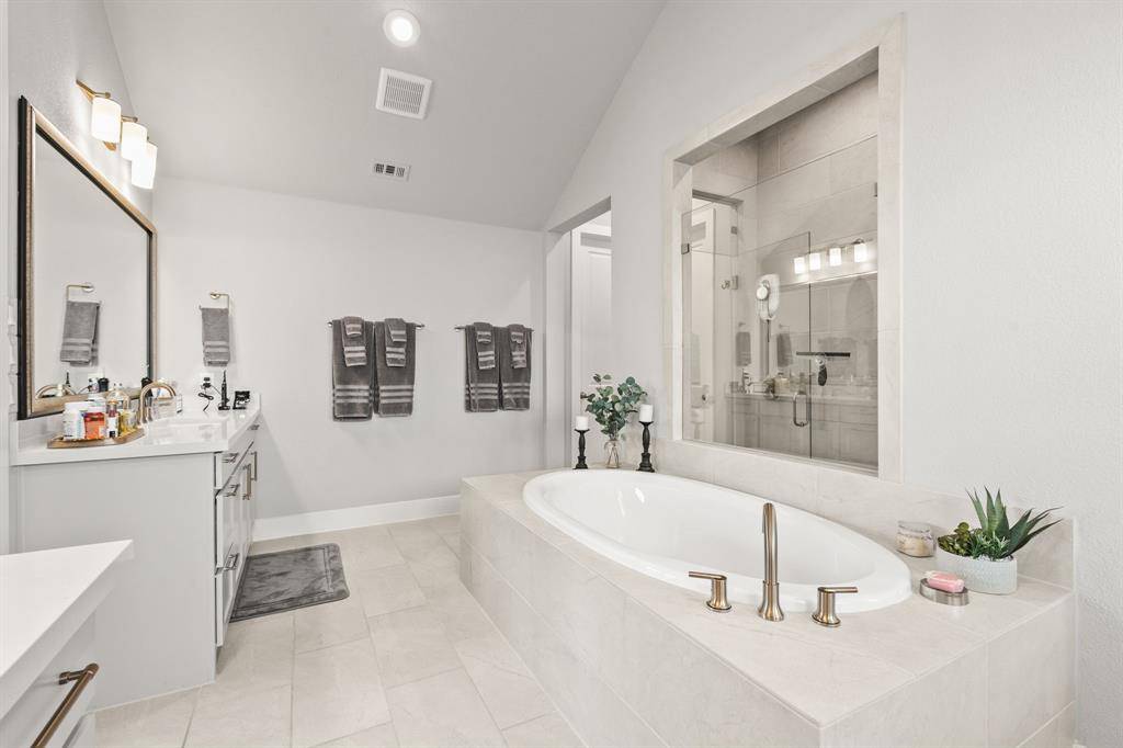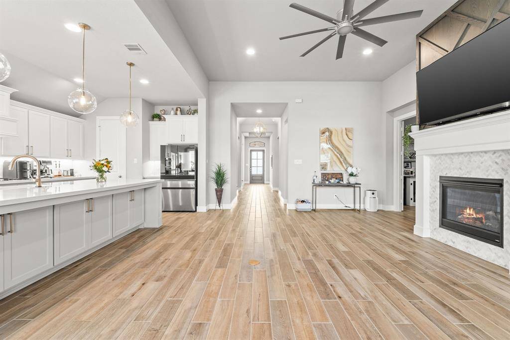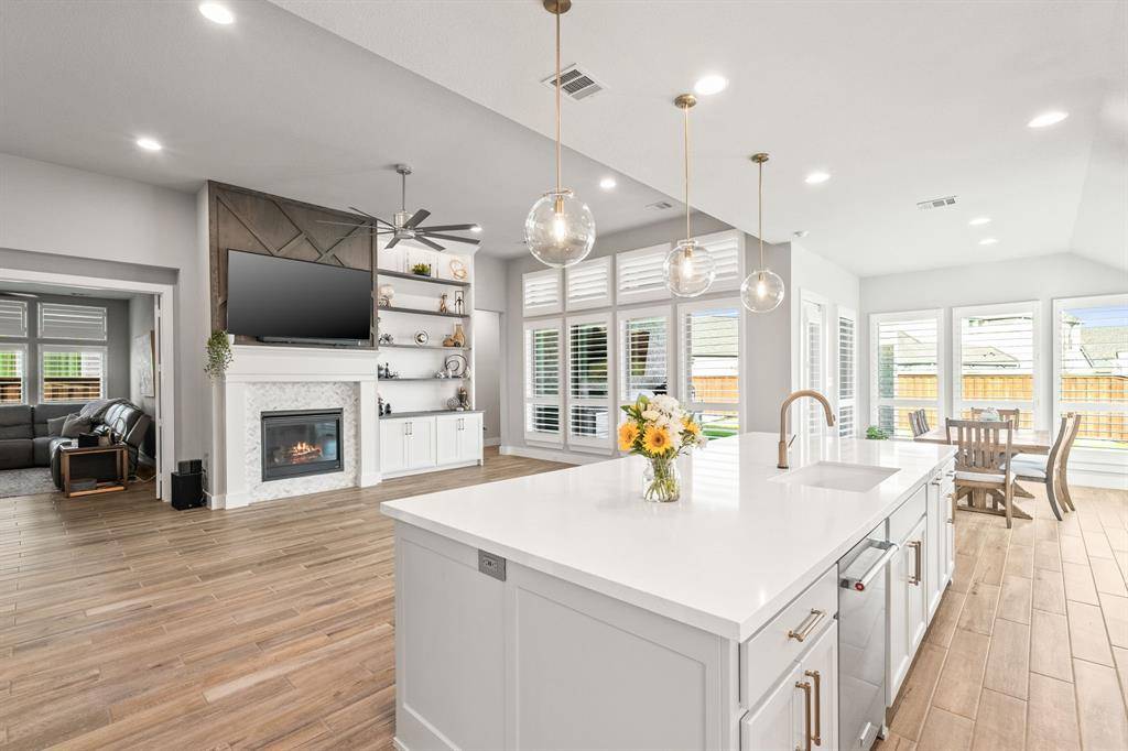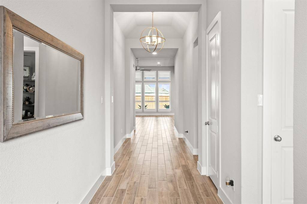 Better than new! Welcome to 8409 Cline Cove in McKinney—an exceptional, nearly new home on a premium oversized corner lot with over $125,000 in post-construction upgrades. Built just over a year ago, this property offers the benefits of new construction without the wait, enhanced with high-end improvements throughout. Inside, you'll find a bright open-concept layout with soaring ceilings, abundant natural light, and wood-look tile flooring throughout the entire home—no carpet. The spacious living area features a custom fireplace wall with custom built-in cabinetry, creating a perfect space for both everyday living and entertaining. The kitchen is a true centerpiece, complete with an oversized island, quartz countertops, upgraded appliances, custom cabinetry, and designer lighting, all flowing seamlessly into the dining and living areas. The private primary suite offers a spa-like bathroom with a soaking tub, oversized shower, dual vanities, and a large walk-in closet. Extensive upgrades include plantation shutters on all windows, full flooring replacement, upgraded fixtures and hardware, added cabinetry, ceiling fans in all bedrooms, and smart home enhancements. Outdoor features are unmatched, with a fully built-out outdoor kitchen (BBQ, fridge, storage), an extended and coated patio, a luxury 8-person saltwater hot tub with dedicated wiring, professional landscaping, drainage improvements, irrigation updates, and low-maintenance rock and edging. The 3-car garage features epoxy flooring, and the oversized corner lot offers additional space, privacy, and curb appeal. Located in the desirable Trinity Falls community with easy access to top-rated schools, shopping, and dining, this home stands out as truly move-in ready with upgrades already complete.