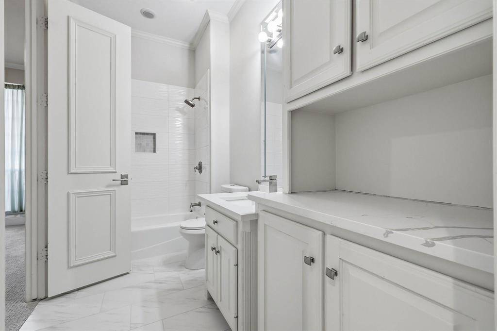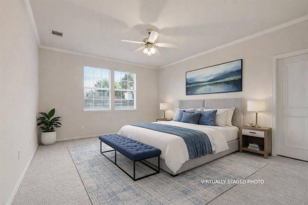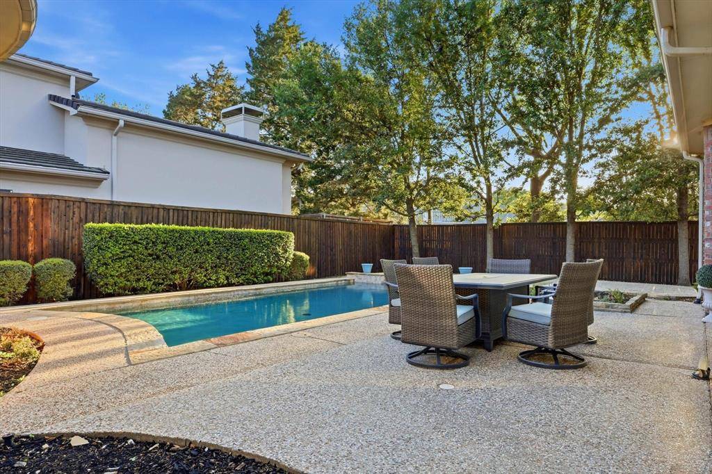 Behind the gates of the prestigious, guard-secured Oakdale community, this exquisitely updated estate offers an exceptional blend of traditional elegance, comfort, security and privacy. A grand, light-filled foyer with soaring ceilings and a curved staircase sets the tone, flanked by a formal living space and richly appointed wood paneled study. Walls of windows frame serene pool views and bathe the main living areas in natural light, creating a seamless connection between indoor sophistication and outdoor tranquility. At the heart of the home, the kitchen opens effortlessly to the family room and breakfast area, designed for both intimate mornings and vibrant entertaining. The primary suite is a true sanctuary, complete with a sitting area and a spa-inspired bath featuring dual vanities, refined finishes, and a generous walk-in closet with shelves and drawers and a built-in cedar closet. A secluded guest suite with private bath offers exceptional comfort for visitors, while an additional downstairs bedroom provides flexibility as a second office or private retreat. Upstairs, dual staircases lead to three spacious bedrooms, two baths, an oversized game room, and a dedicated exercise or media lounge. Amenities include a walk-in pantry, ample storage throughout and two utility rooms - one upstairs and one downstairs. Thoughtfully designed outdoor spaces include a gated sparkling pool and with a separate play yard, allowing children and pets to enjoy their own secure retreat. Residents of Oakdale enjoy picturesque ponds, lush greenbelts, and a sense of community rarely found. Zoned to highly sought-after West Plano schools and minutes from premier private schools, shopping and dining. Extensive recent updates include fully remodeled bathrooms, new carpet, fresh interior paint, a new roof and gutters in 2024, and more. Offering the confidence of modern improvements within a timeless estate setting.
