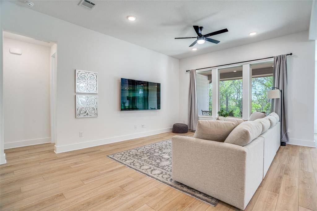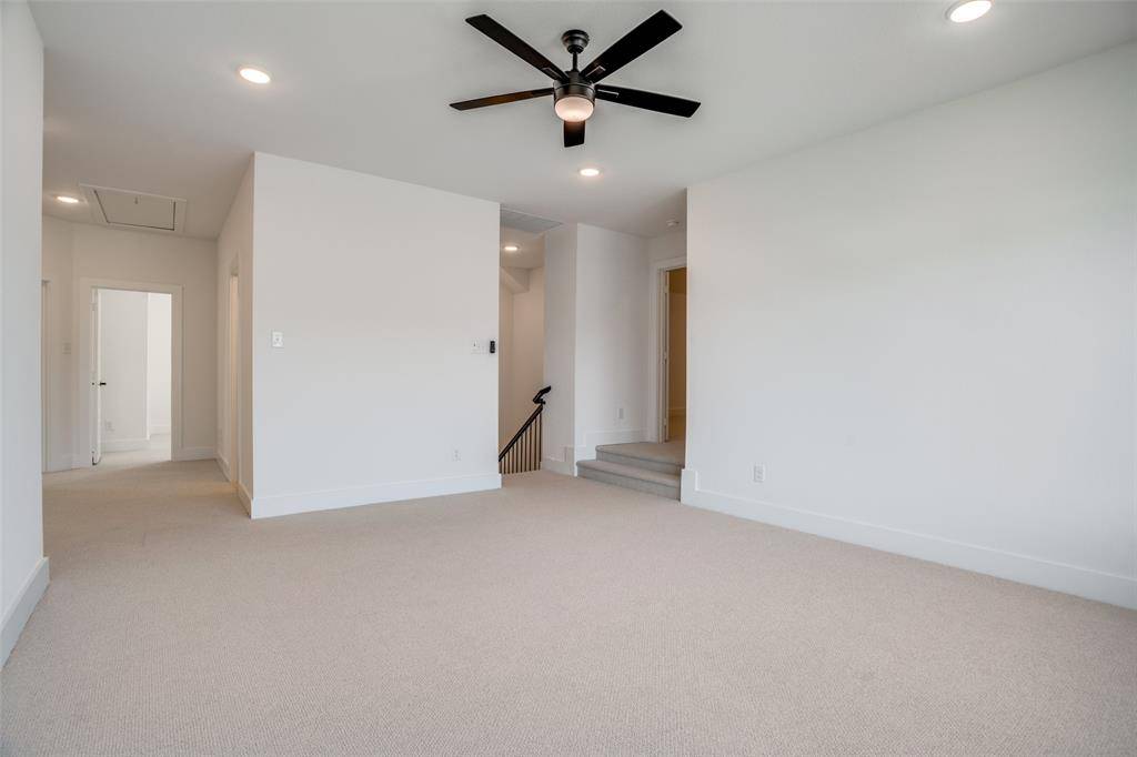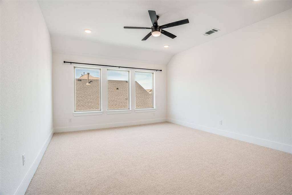 Head upstairs to a massive game room, an oversized media room pre-wired for 5.1 surround sound and flat-screen viewing, and three generous bedrooms, each with a walk-in closet — one complete with its own ensuite. The second full bath features double sinks and a private water closet.