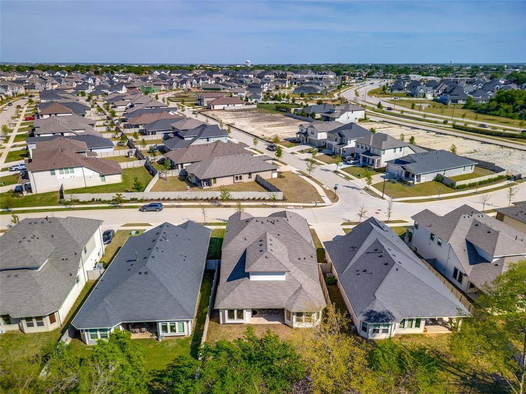 Out back, a covered patio with a gas stub overlooks serene green space through a wrought iron fence — your blank canvas for outdoor living. The 2-car garage is EV-ready, and front uplights plus holiday-light outlets in the eaves make this home shine year-round.