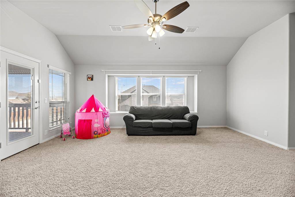 Beautifully upgraded 5-bedroom, 3.5-bathroom home—move-in ready and packed with features. Enjoy the convenience of a Tesla charger in the garage, ideal for eco-conscious living. This spacious home offers a flexible and open layout with two primary suites, each featuring its own private en-suite bathroom—perfect for multigenerational households or hosting guests in comfort. The bright kitchen includes stainless steel appliances, plenty of storage, and opens seamlessly to the dining and living areas. Upstairs, enjoy two private balconies, great for relaxing with morning coffee or evening sunsets. The fenced backyard is perfect for outdoor gatherings or simply enjoying some quiet time at home. Located in a highly desirable community that offers lake access and miles of scenic trails along the shoreline, you'll enjoy nature at your doorstep while still being close to schools, shopping, and dining. Community features multiple swimming pools, club house and even a gym. Additional highlights include walk-in closets, in-home laundry, central heating and air, and a three-car garage. Pets considered on a case-by-case basis. Available for June 1st move in!