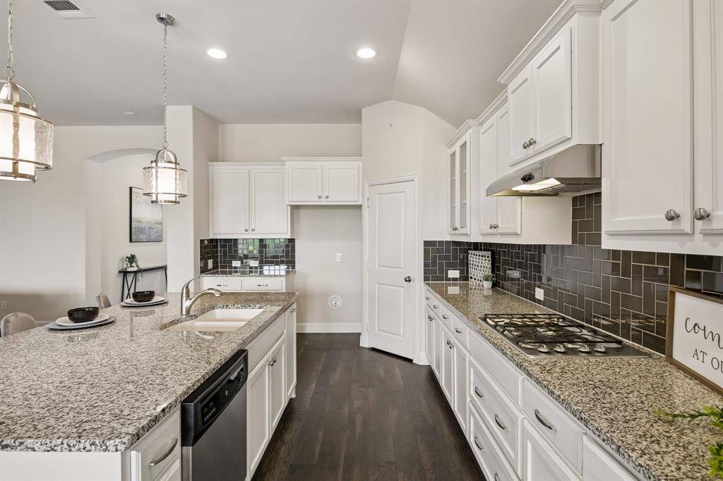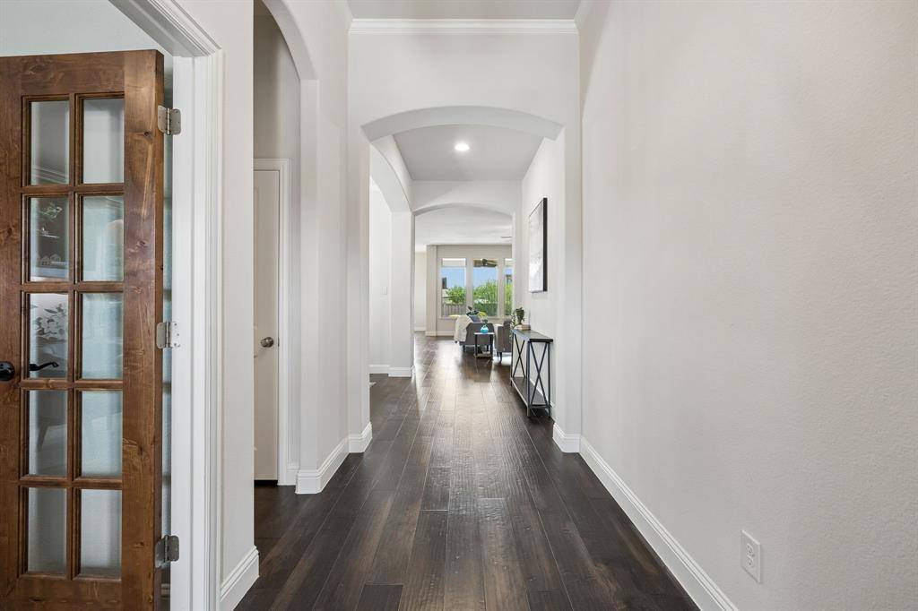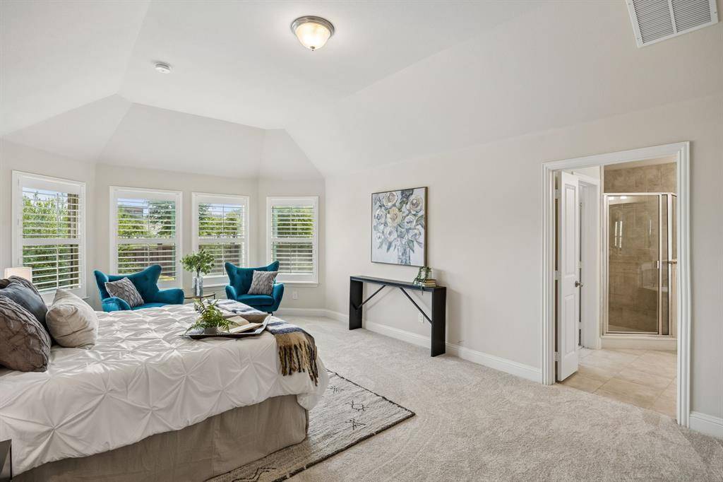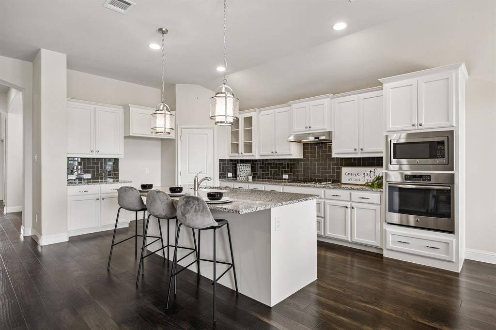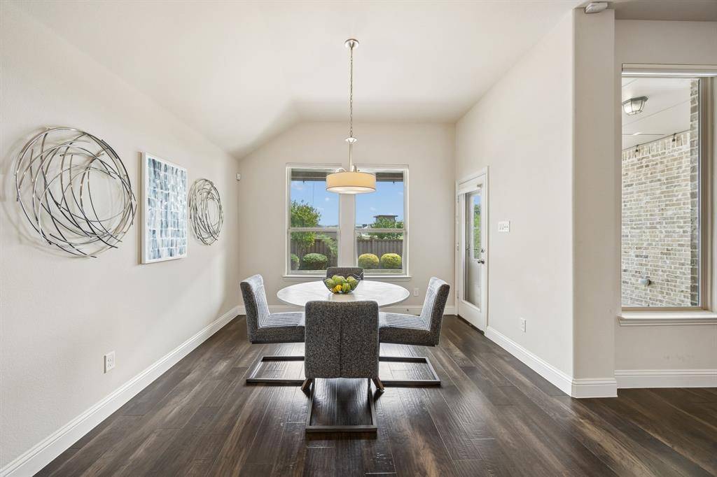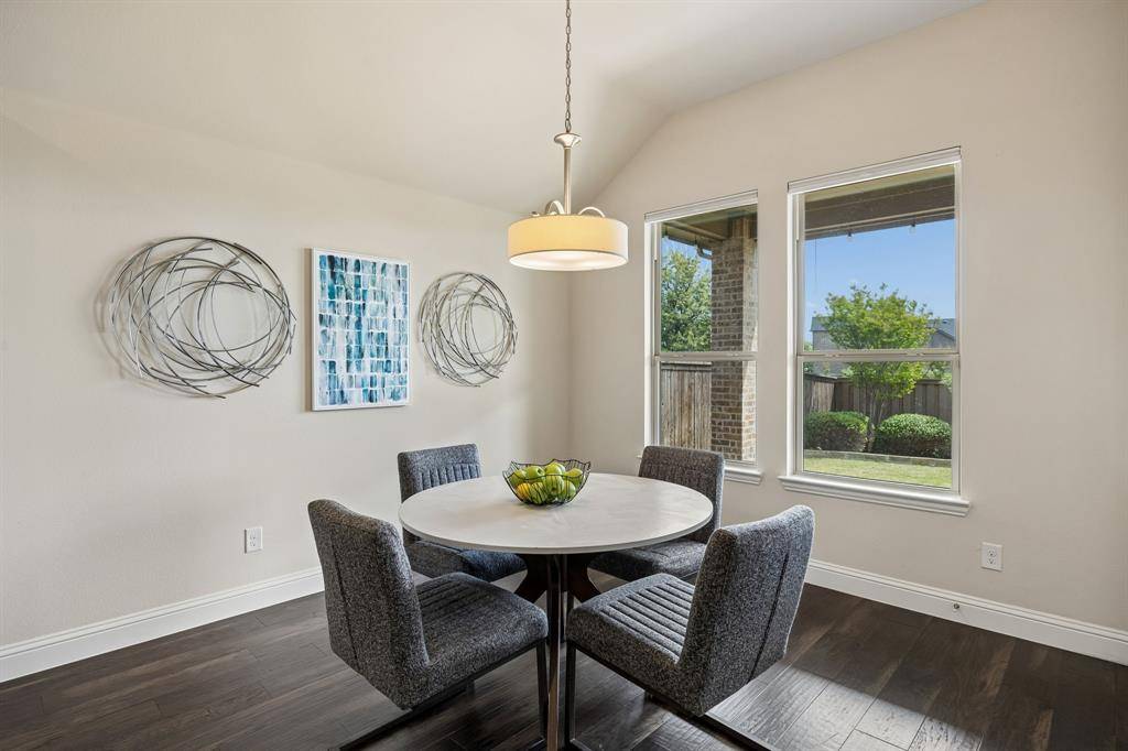 Located in the master-planned community of Light Farms, this beautifully designed home offers convenient access to top-rated schools, premier shopping, dining, and the Dallas North Tollway. Featuring 3 bedrooms, 3 full baths, a private office with glass front doors, and a formal dining room, this home combines thoughtful design with comfortable everyday living. The open-concept floor plan seamlessly connects the kitchen, living room, and breakfast nook, creating an inviting space ideal for entertaining. The light-filled living room features a cozy fireplace and overlooks the covered patio. The kitchen is a standout with a large island, white cabinetry, designer tile backsplash, stainless steel appliances, gas cooktop, pantry, and ample prep space. The spacious primary suite offers a relaxing seating area and spa-like bath complete with dual vanities, soaking tub, separate walk-in shower, and large walk-in closet. Secondary bedrooms are well-sized with access to full baths, providing flexibility for guests or multi-generational living. Enjoy outdoor living on the large covered patio overlooking beautifully landscaped front and backyard spaces with rock-accented flower beds. Additional highlights include a 3-car garage, plantation shutters, designer lighting, neutral color palette, and engineered wood flooring. Residents of Light Farms enjoy resort-style amenities including multiple pools, clubhouse, pickleball and tennis courts, basketball courts, bocce ball, fitness center, parks, playgrounds, and miles of scenic trails. The community's signature 90-acre Constellation Park features campsites, an 11-acre lake, sandy beach, and expansive green space, offering year-round opportunities for recreation and relaxation.