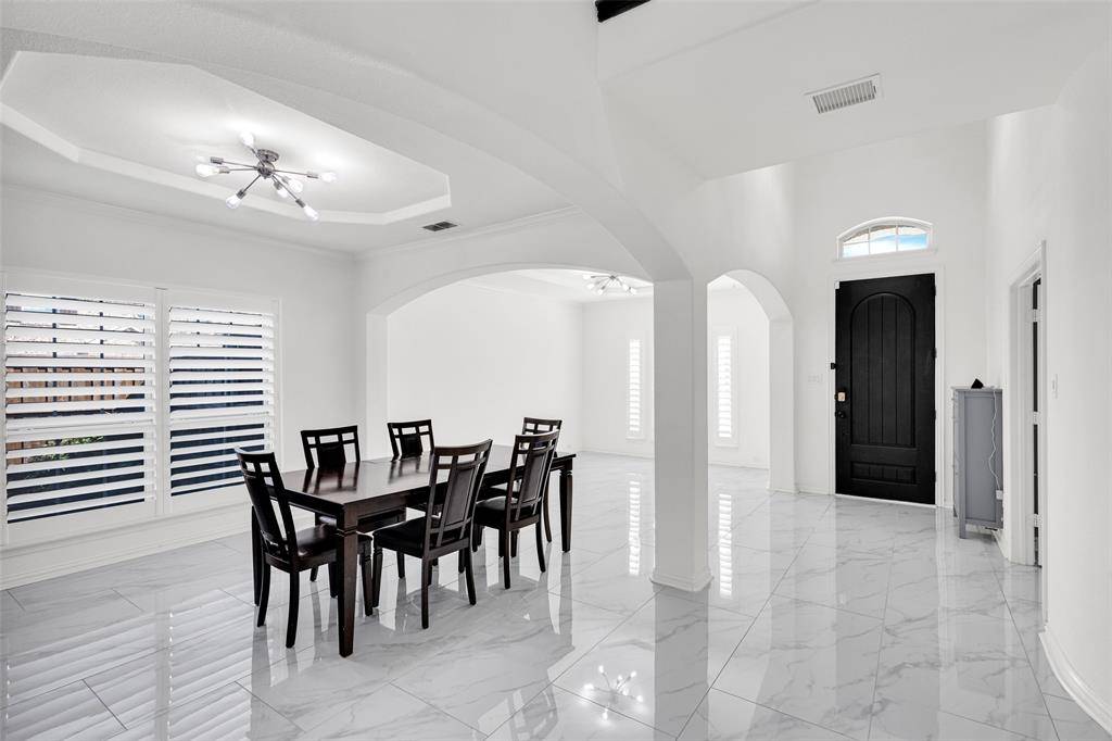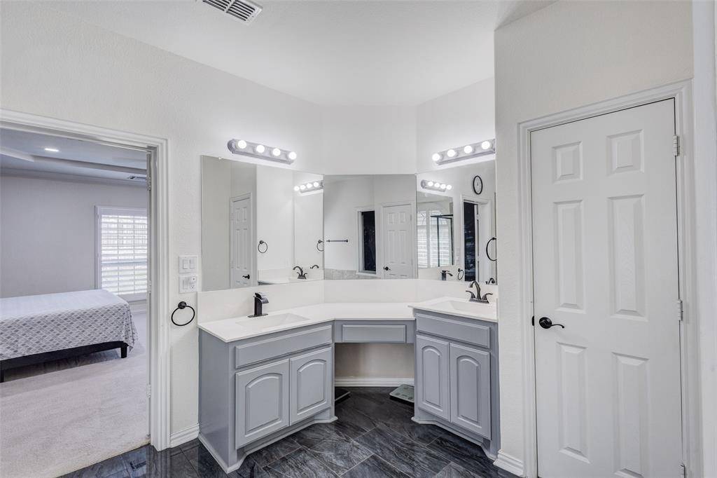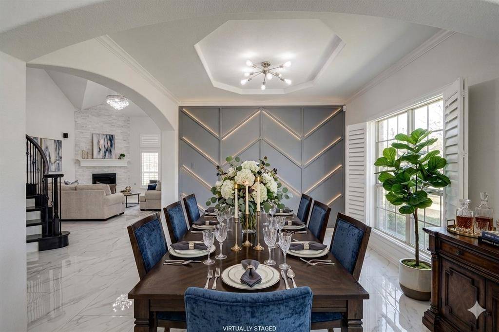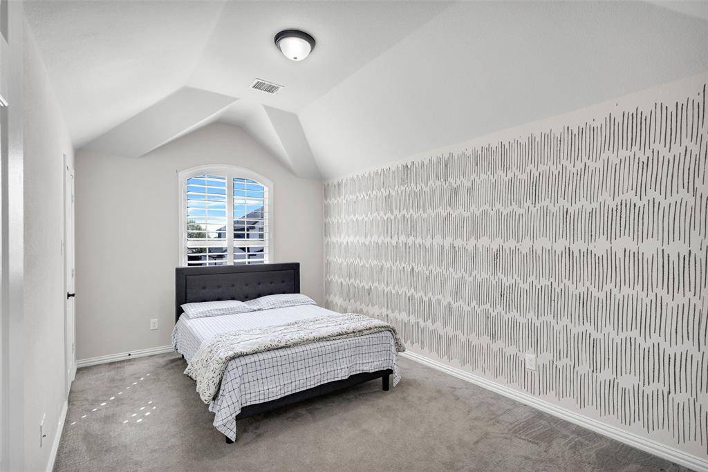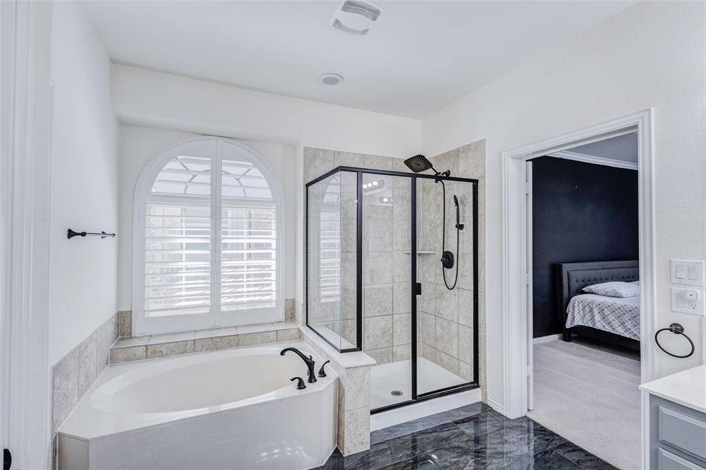 Gorgeous, updated home on an east-facing, north corner lot in the highly desirable Prosper ISD. Live the life you've always dreamed in this move-in-ready residence featuring impressive architectural details and thoughtful upgrades throughout. The main level welcomes you with oversized porcelain tile floors, soaring ceilings, and a stunning curved stairway with wood treads. The family room is highlighted by a dramatic floor-to-ceiling fireplace and wall of beautiful windows.A true Chef's kitchen awaits, featuring quartz countertops, a latest design gas cooktop, motion-sensor vent hood, convection oven, and a ceramic sink. Retreat to the master suite, which offers a private sitting area, dual sinks, a soaking tub, and a spacious walk-in closet. Upstairs, entertain in the expansive gameroom or enjoy a movie in the dedicated media room (equipment included!). Four additional oversized bedrooms and two full baths complete the second floor.The private backyard is an outdoor oasis with a covered back patio, upgraded privacy fence, and a storage building that stays with the property. Custom JellyFish exterior lighting creates the perfect evening ambiance. Located just steps from Prestwyck Park, the community pool, and walking trails, with quick access to Rock Hill High and top-tier dining and entertainment. This is a must-see!