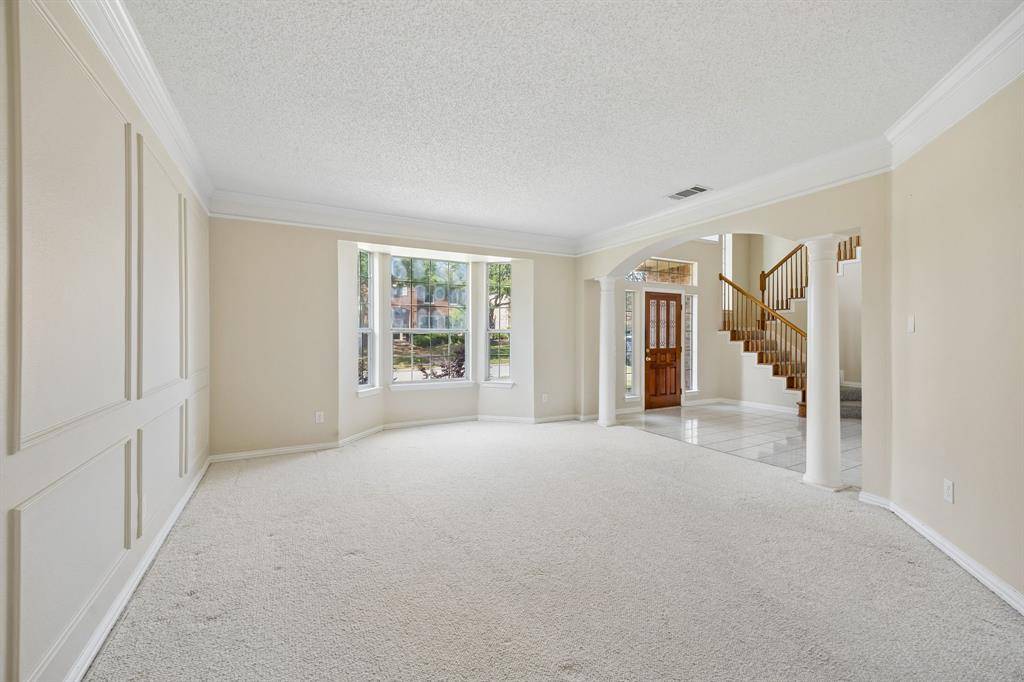 Step inside to a stunning two-story entry that makes a grand first impression. A stacked formal living and dining area sits to one side of the entry, while a warm and inviting family room with walls of windows is positioned on the other side, filling the home with natural light and overlooking the backyard.