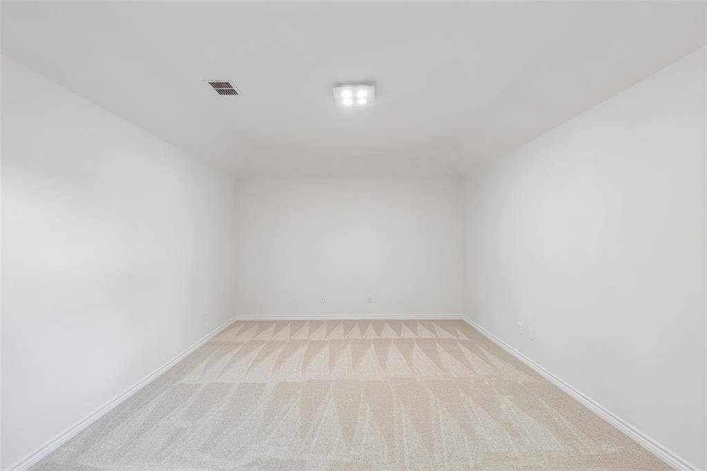 Situated within the prestigious gated enclave of The Shores at Hidden Cove, just moments from Lake Lewisville and Hidden Cove Marina, this beautifully remodeled brick traditional offers an exceptional blend of elegance, comfort, and resort-style living. Enjoy effortless access to boating, fishing, lakeside dining, and scenic outdoor recreation—all just beyond your doorstep. Thoughtfully reimagined with a refined eye for design, this fabulous 1.5-story home spans approximately 2,507 SF and showcases a bright, open-concept layout complemented by chic, clean-lined interiors and a sophisticated all-white palette. Rich Luxury Plank Vinyl Floors grace the main level, while architectural details such as deep crown molding, art niches, wainscoting and custom paneling add timeless character throughout. The 1st floor is designed for both formal entertaining and everyday living, featuring elegant formals, including a striking dining room with cross-beamed ceiling and stainless steel chandelier. The expansive living room flows seamlessly into a gourmet kitchen, complete with granite countertops, stainless appliances, breakfast bar plus a breakfast area. A private office with French doors offers the perfect work-from-home retreat. The luxurious primary suite serves as a serene sanctuary, offering a spacious walk-in closet and elegant bath. Two additional bedrooms are generous-sized and feature well-appointed baths. Upstairs, the home continues to impress with a versatile game room and an oversized media room—both with new carpeting and ideal for entertainment. Outdoors, a covered patio invites year-round enjoyment and overlooks a sprawling backyard with space for a future pool. Located in one of Frisco's most sought-after communities, residents enjoy exceptional amenities, including 2 community pools, playgrounds, scenic ponds, and covered picnic areas. Near Hidden Cove Park, the marina and hiking trails, this home offers a lifestyle of luxury, leisure, and convenience.
