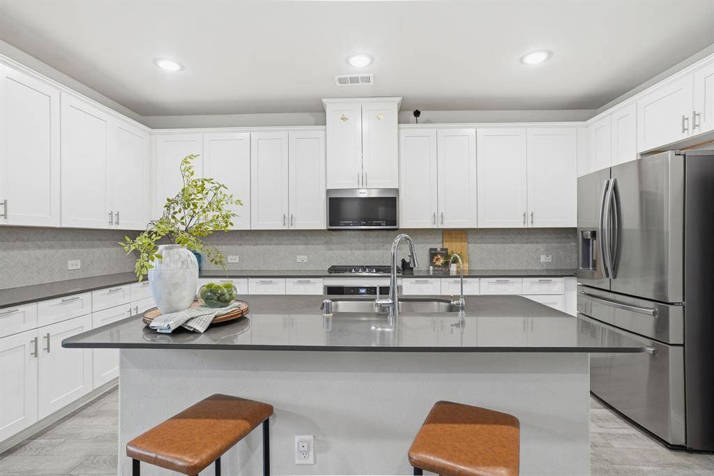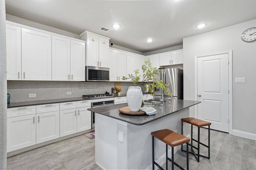 The kitchen features quartz countertops, stylish cabinetry, and abundant storage, opening seamlessly to the main living areas for everyday living and entertaining. Luxury vinyl plank flooring runs throughout the main spaces, combining durability with modern appeal.