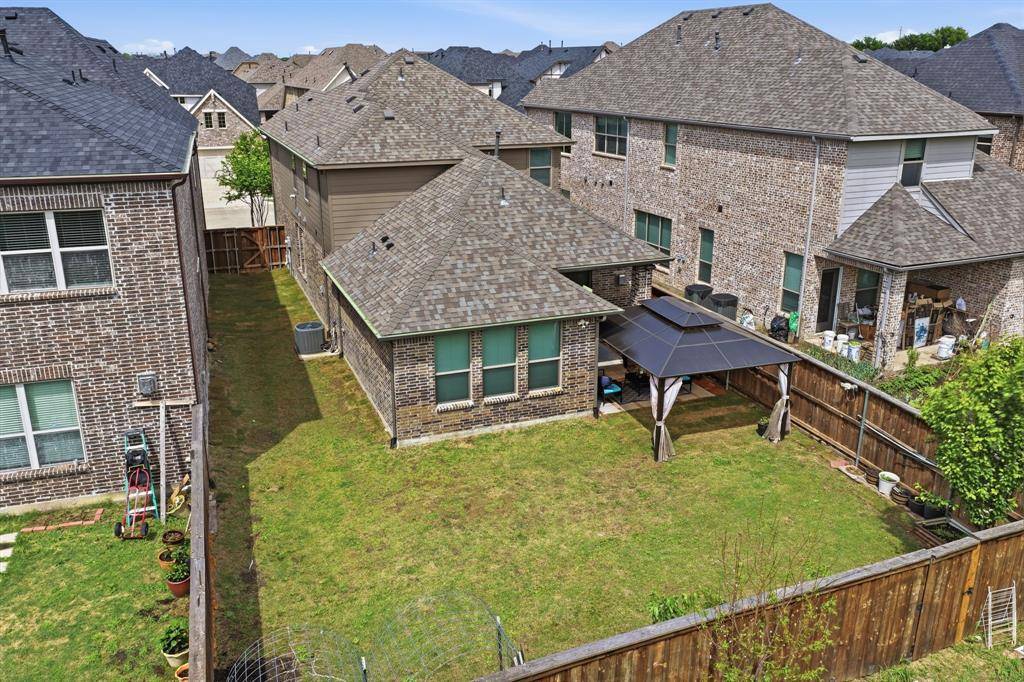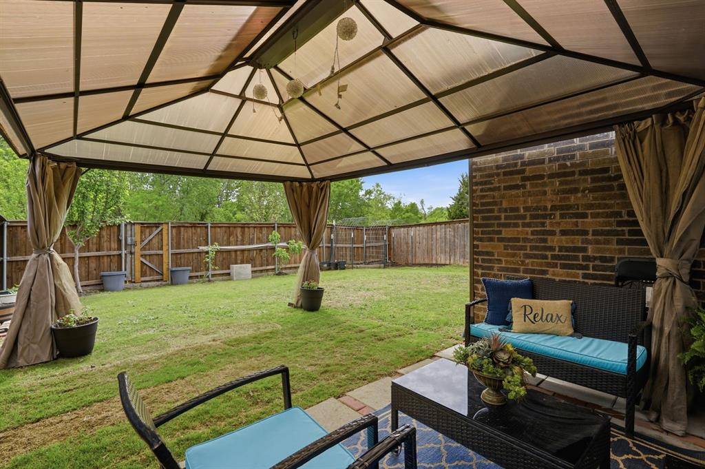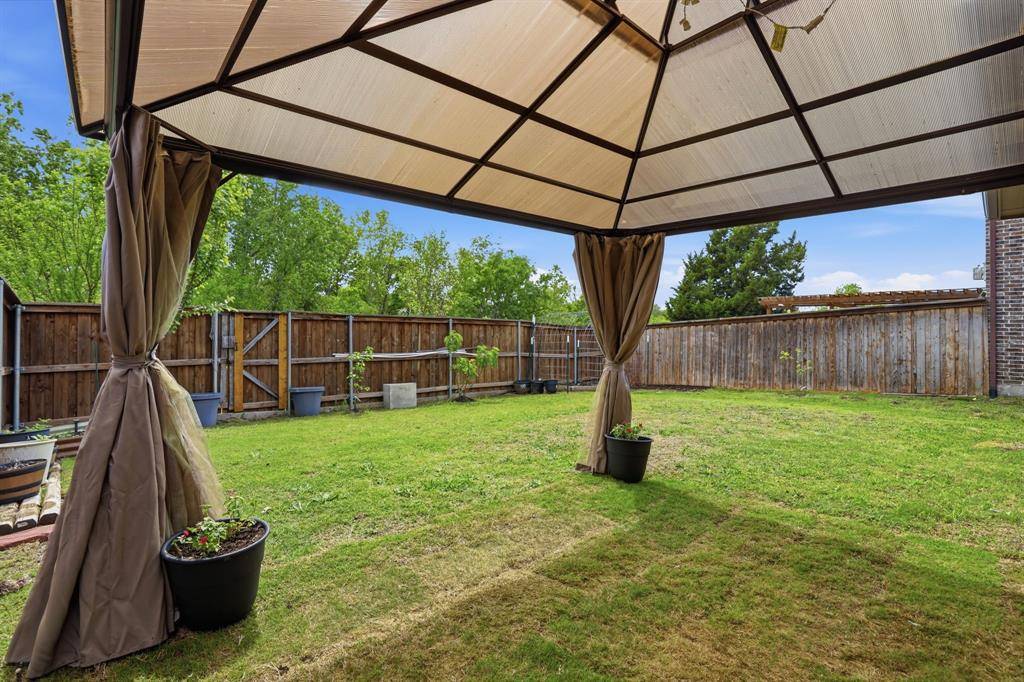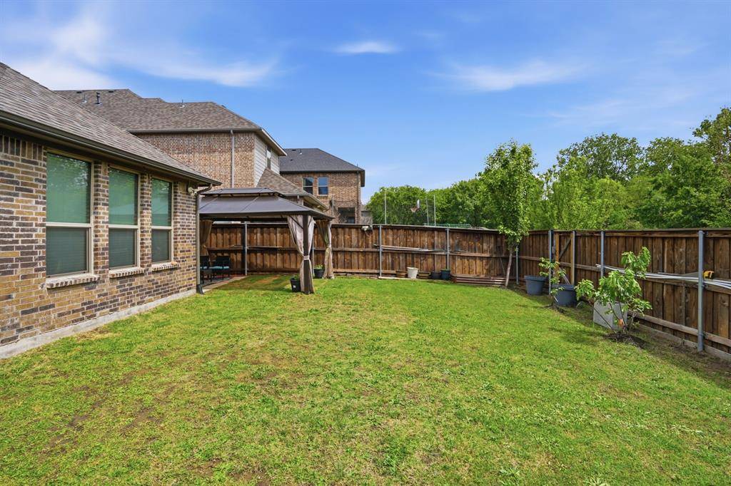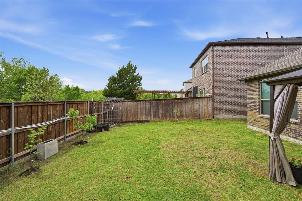 Step outside to a spacious backyard featuring a beautifully built pergola—perfect for relaxing or entertaining—while still offering ample space to design a custom pool and outdoor oasis, a rare find for newer construction homes in Plano.
