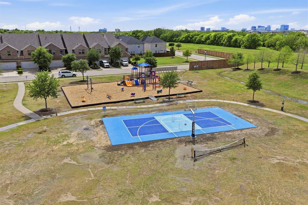 Residents enjoy access to an amenity center, basketball and volleyball courts, and multiple walkable green spaces throughout the community.