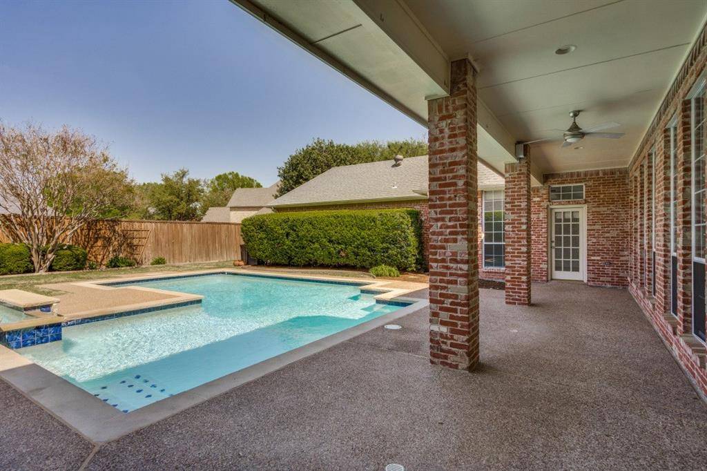 Step outside to your private backyard oasis featuring a sparkling pool with spa, a covered patio, and a large grass area, ideal for outdoor living, play, or quiet evenings at home. Additional highlights include a circle drive, custom details throughout, and a spacious layout designed for both everyday living and entertaining. Ideally located near premier shopping, dining, outstanding private school options including Prince of Peace, John Paul II, All Saints, along with convenient access to Jesuit and Ursuline and H-E-B, this home offers convenience along with a luxury lifestyle in one of West Plano's most desirable communities.