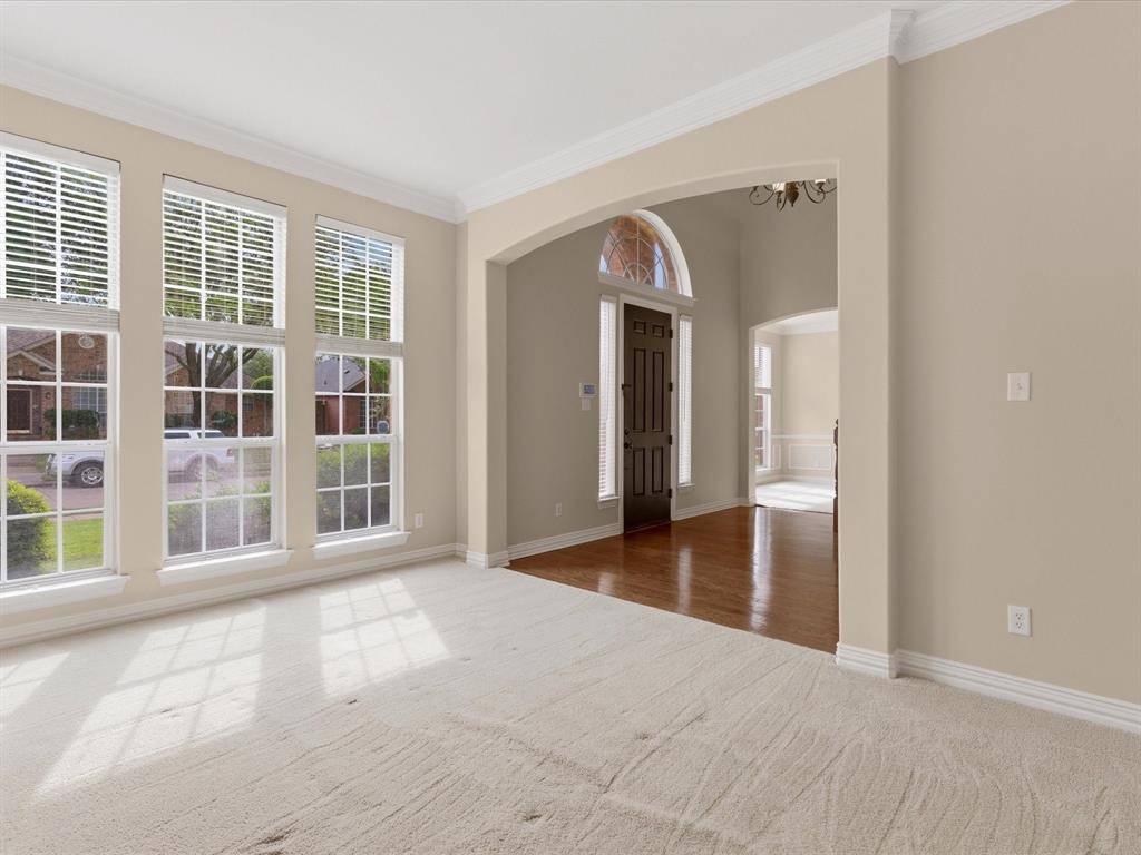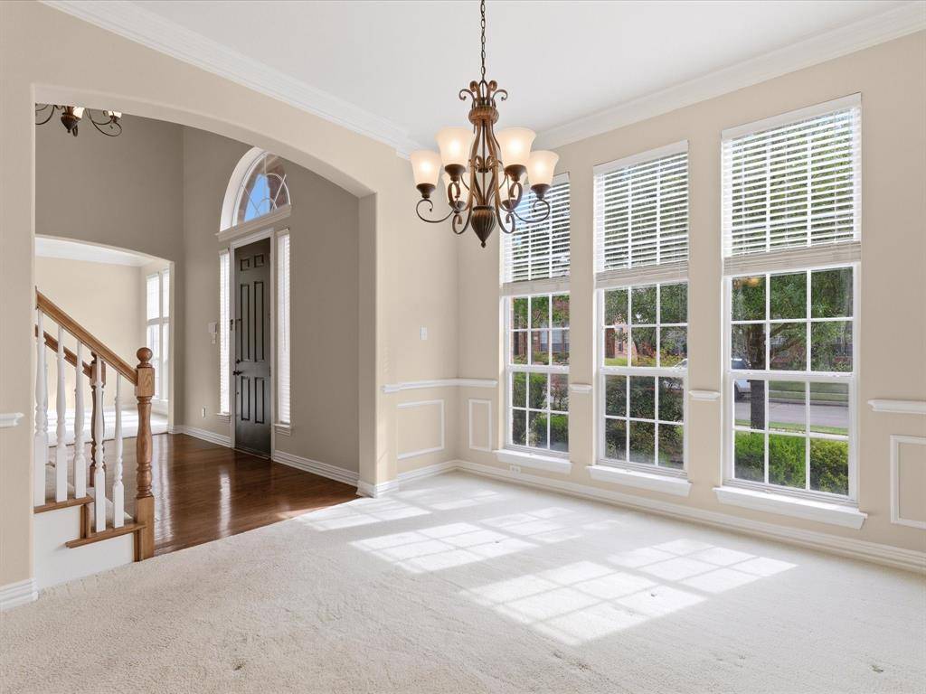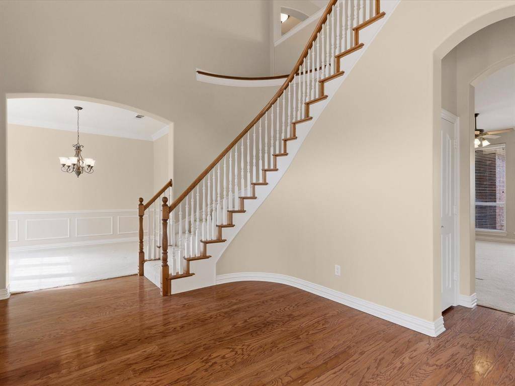 Welcome to this elegant 3,400 sq. ft. home in Plano that blends luxury with comfort. The moment you step inside, you're greeted by a breathtaking curved staircase that sets a tone of timeless sophistication. The foyer welcomes you with rich wood flooring that creates warmth and character. The split formal living and dining areas flow seamlessly, ideal for both intimate gatherings and entertaining.