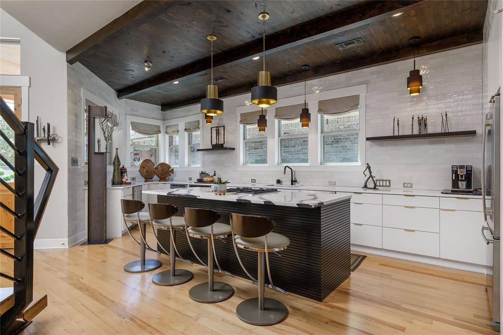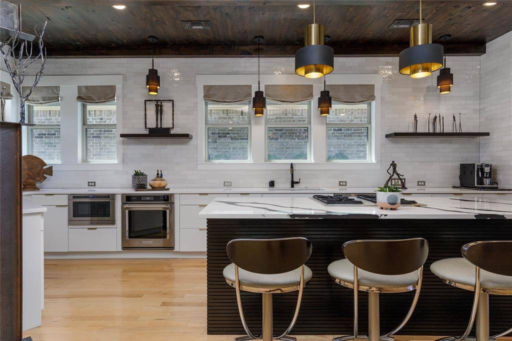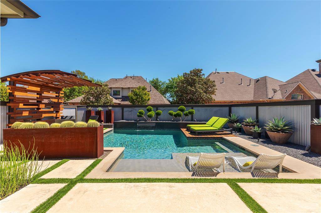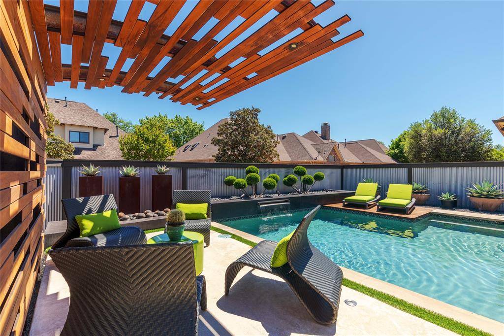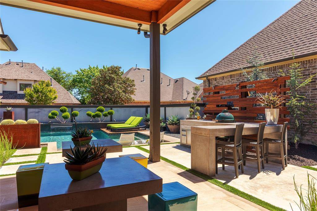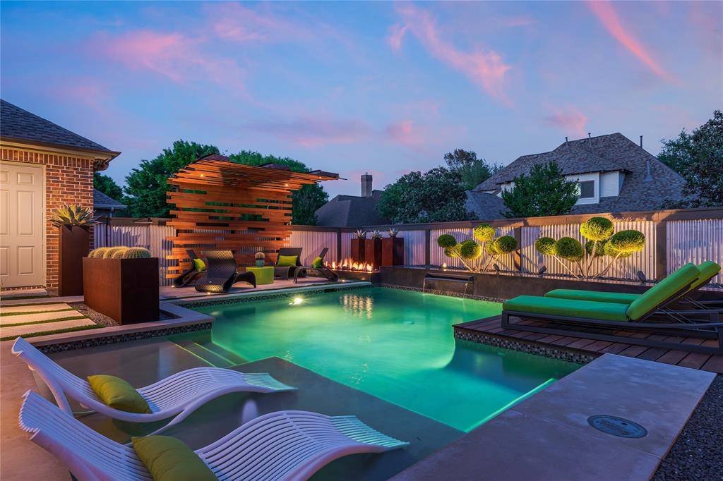A truly one-of-one showpiece, this exceptional residence is positioned in the highly sought-after Ballantrae enclave of Stonebridge in McKinney. From the moment you arrive, the home's striking curb appeal sets the tone—lush landscaping is enhanced by a professionally designed outdoor lighting system by Signature Illuminations Designs, creating a memorable presence day and night. The resort-caliber backyard, designed by Aquaterra Outdoors and showcased as “Shadywood,” is extraordinary. Anchored by a stunning resort-style pool, the space is built for relaxation and elevated entertaining. A 10-foot fire pit with an 8-foot burner serves as a dramatic focal point, while a custom steel-framed IPE wood pergola provides a refined lounge setting. The fully equipped concrete outdoor kitchen—featuring a large Green Egg, stainless steel drawers, and custom cabinetry—is complemented by a striking steel-framed IPE wood backdrop. Inside, an open, light-filled layout pairs with modern finishes that exude warmth and sophistication. The grand entry showcases custom Alder detailing, while a floating wood and steel staircase creates a bold architectural statement. A private office overlooking the backyard offers a serene workspace. The chef-inspired kitchen, renovated in 2024, features a beamed ceiling, upgraded lighting, designer tilework, new countertops, soft-close cabinetry, and premium appliances—ideal for everyday living and entertaining. The 1st floor primary suite is a true retreat, complete with a spa-like bath featuring a double concrete sink atop a custom Tiger wood vanity, Italian porcelain tile, an oversized shower with built-in seating, and a bubble massage air bath. Upstairs, two additional bedrooms and a spacious game room provide flexibility. An oversized 2 car garage with epoxy flooring, a Container Store storage system, and a workbench adds prime functionality. Thoughtfully curated, this home presents a rare opportunity to own a distinctive McKinney property.