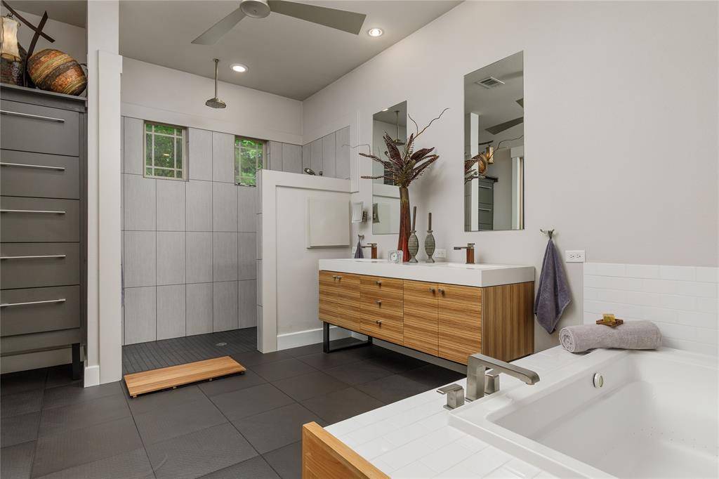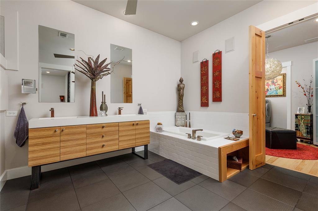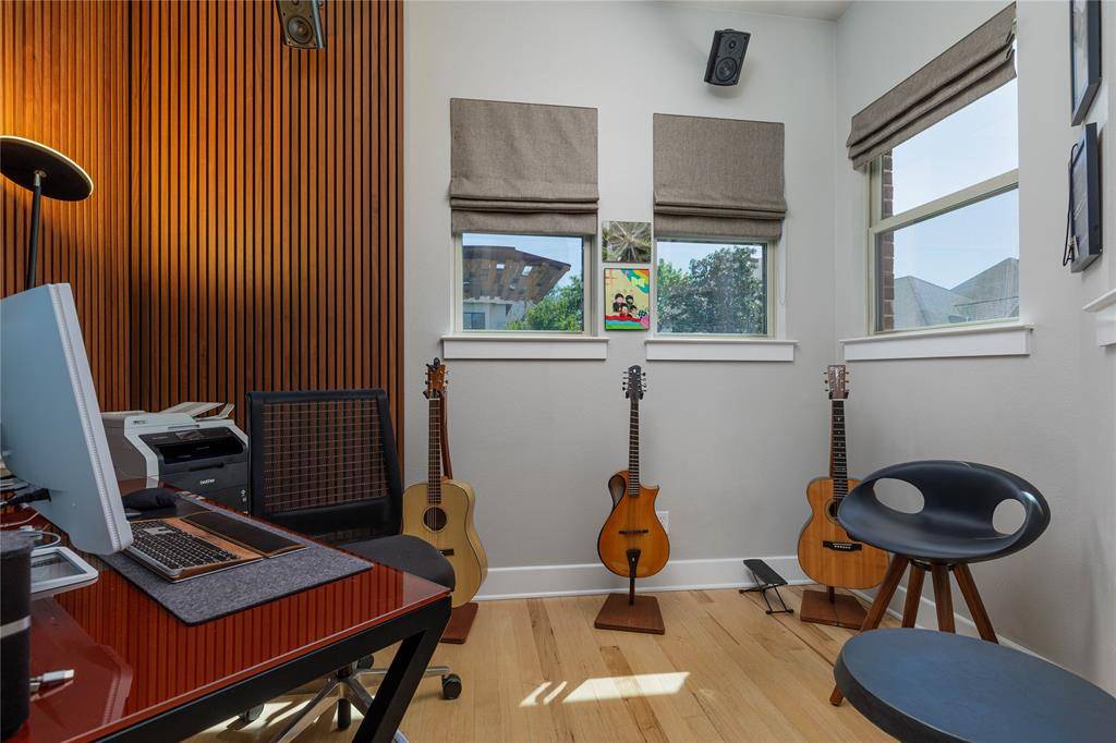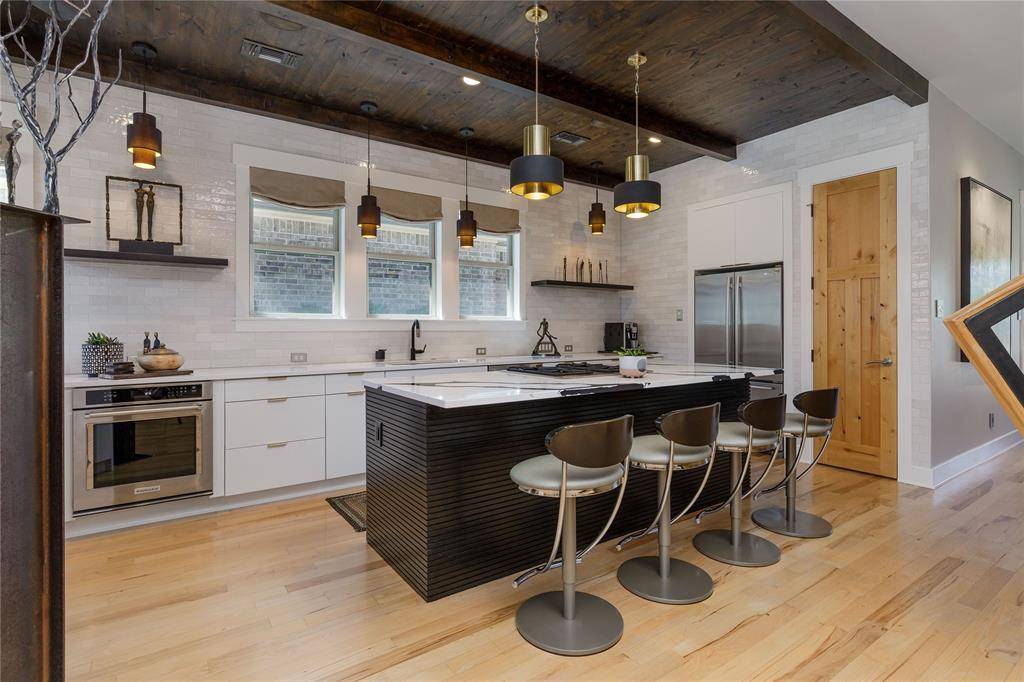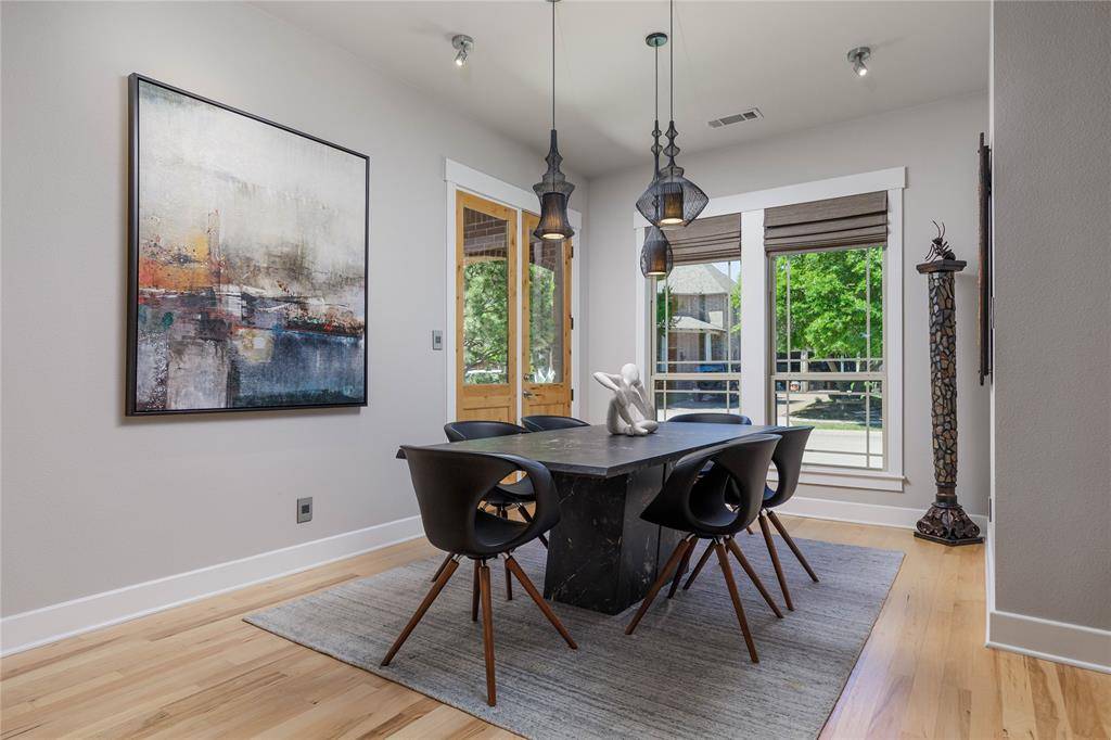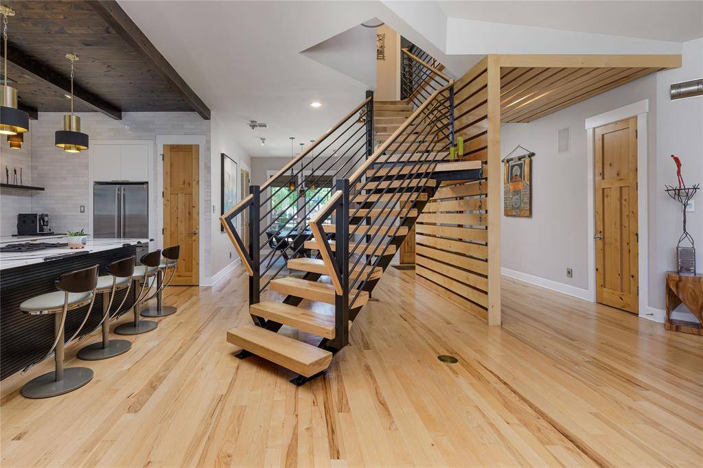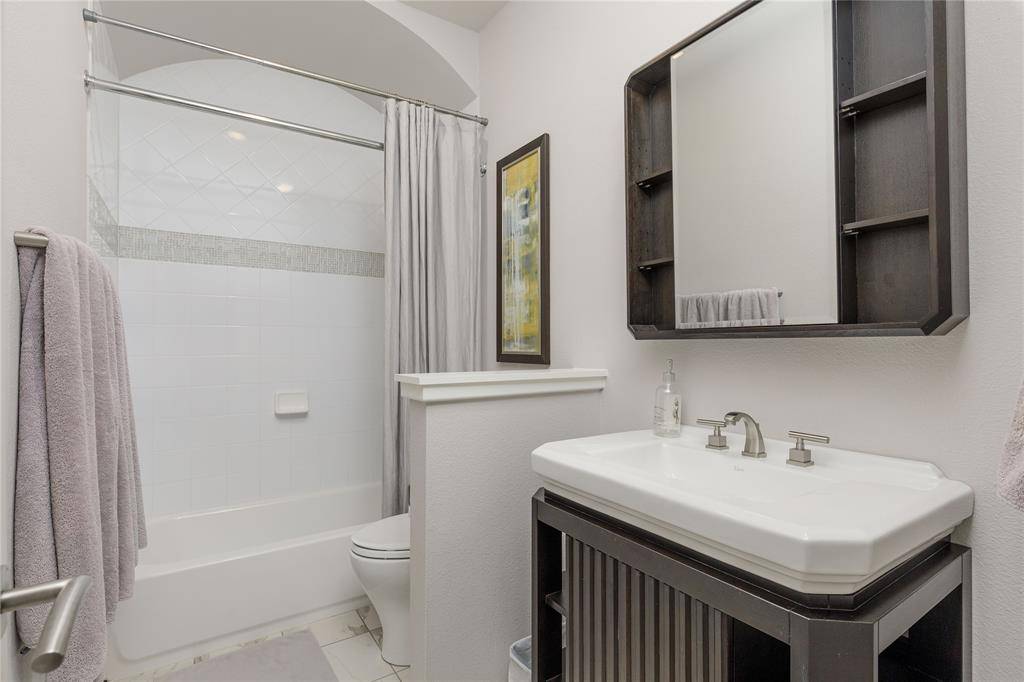 A truly one-of-one showpiece, this exceptional residence is positioned in the highly sought-after Ballantrae enclave of Stonebridge in McKinney. From the moment you arrive, the home's striking curb appeal sets the tone—lush landscaping is enhanced by a professionally designed outdoor lighting system by Signature Illuminations Designs, creating a memorable presence day and night. The resort-caliber backyard, designed by Aquaterra Outdoors and showcased as “Shadywood,” is extraordinary. Anchored by a stunning resort-style pool, the space is built for relaxation and elevated entertaining. A 10-foot fire pit with an 8-foot burner serves as a dramatic focal point, while a custom steel-framed IPE wood pergola provides a refined lounge setting. The fully equipped concrete outdoor kitchen—featuring a large Green Egg, stainless steel drawers, and custom cabinetry—is complemented by a striking steel-framed IPE wood backdrop. Inside, an open, light-filled layout pairs with modern finishes that exude warmth and sophistication. The grand entry showcases custom Alder detailing, while a floating wood and steel staircase creates a bold architectural statement. A private office overlooking the backyard offers a serene workspace. The chef-inspired kitchen, renovated in 2024, features a beamed ceiling, upgraded lighting, designer tilework, new countertops, soft-close cabinetry, and premium appliances—ideal for everyday living and entertaining. The 1st floor primary suite is a true retreat, complete with a spa-like bath featuring a double concrete sink atop a custom Tiger wood vanity, Italian porcelain tile, an oversized shower with built-in seating, and a bubble massage air bath. Upstairs, two additional bedrooms and a spacious game room provide flexibility. An oversized 2 car garage with epoxy flooring, a Container Store storage system, and a workbench adds prime functionality. Thoughtfully curated, this home presents a rare opportunity to own a distinctive McKinney property.