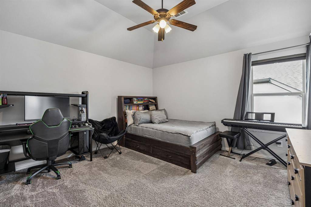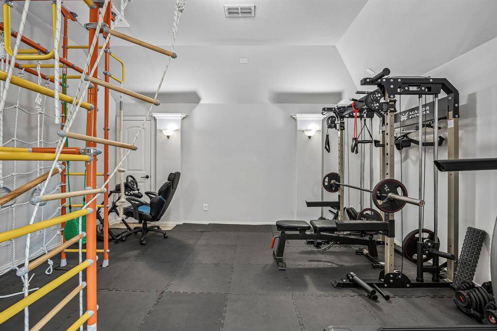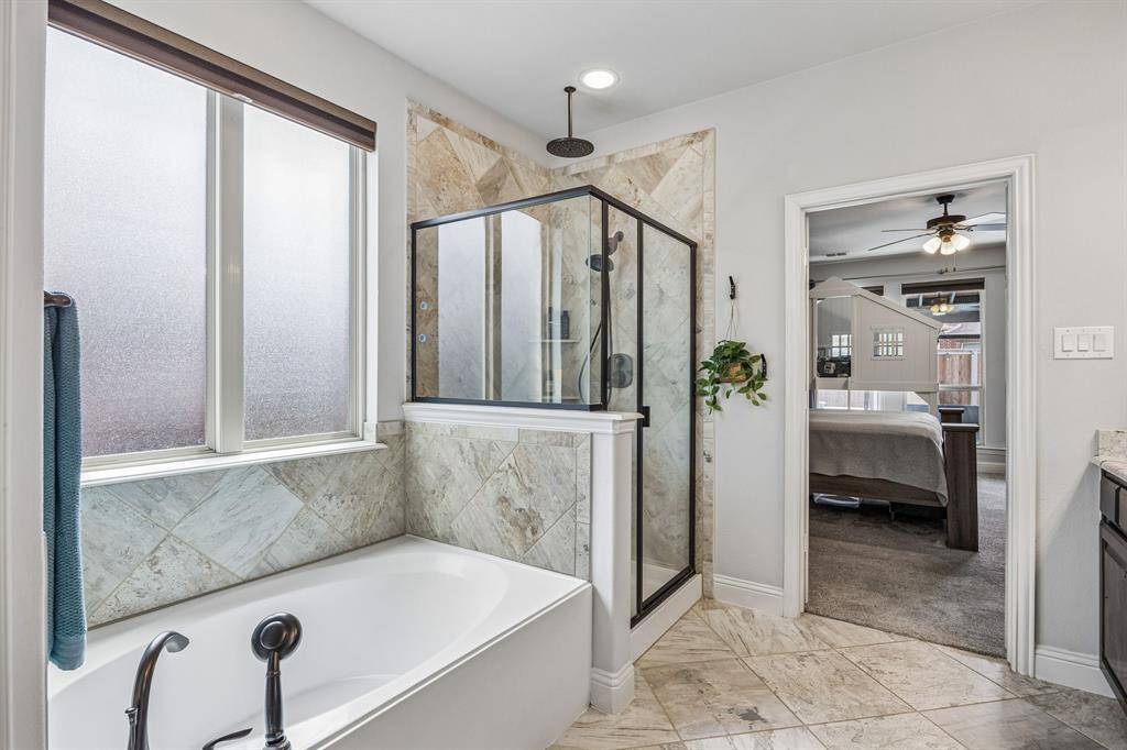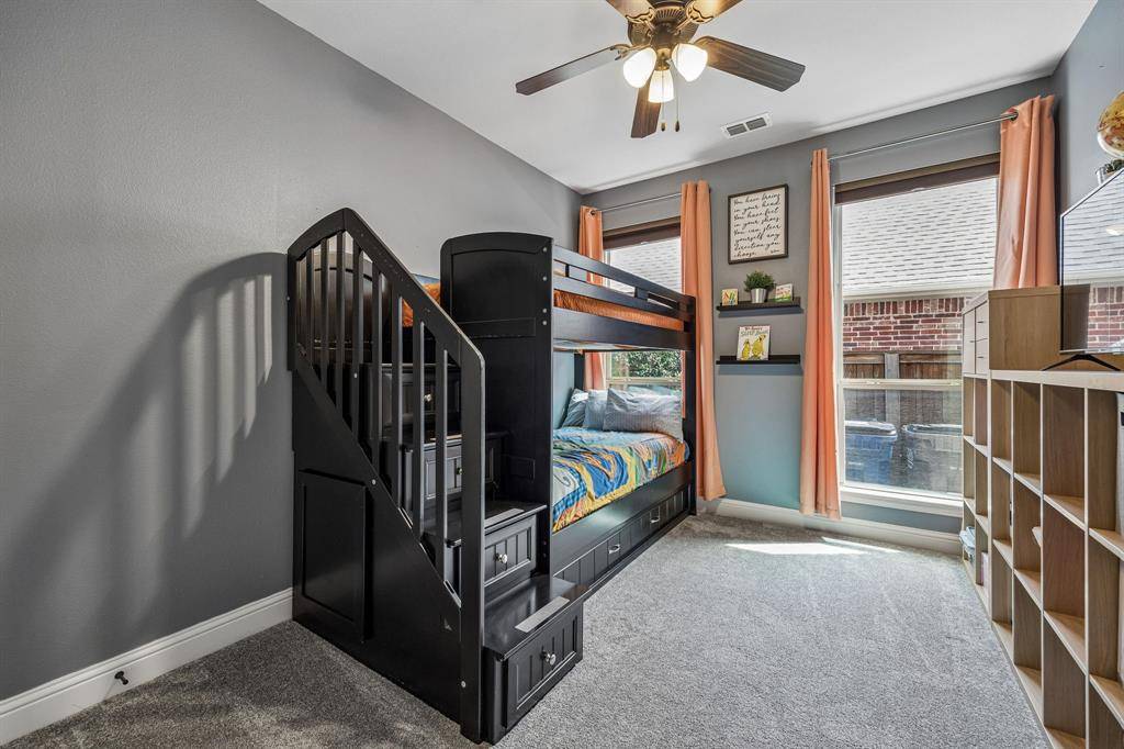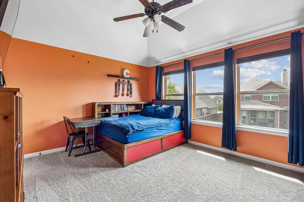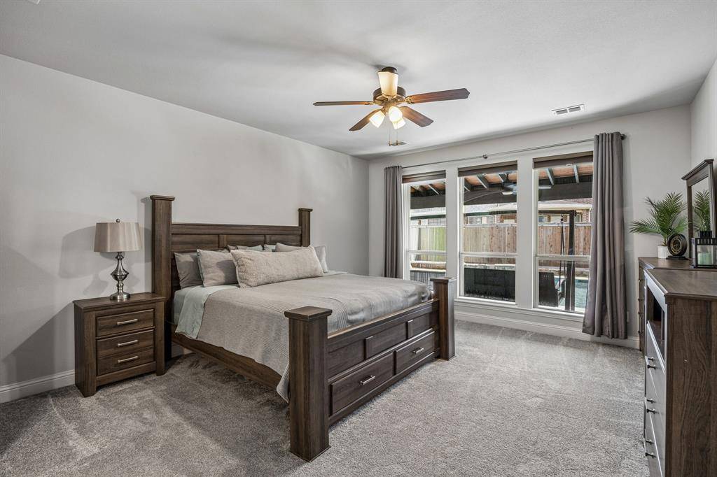 Set within one of the most sought-after master-planned communities in the North Dallas suburbs and zoned to highly rated Prosper ISD, this home has a presence you feel the moment you walk in. Impeccably maintained and thoughtfully laid out, it offers open kitchen and living spaces, five true bedrooms, plus a game room and media room that give everyone room to spread out while still staying connected. A sweeping curved staircase creates a striking first impression and sets the tone for what's to come. The kitchen is both functional and beautiful with rich knotty alder cabinetry, abundant storage, a walk-in pantry, thick granite countertops, and a gas cooktop, along with a butler's pantry that seamlessly connects to the formal dining room for easy hosting. Updated wood-look ceramic tile runs throughout the majority of the first floor, and a stone fireplace brings a warm, grounded focal point to the living area. Natural light pulls your eye straight to the backyard, with incredible views of the pool and spa from the kitchen, living area, and primary suite, while a spacious covered patio and turf create a backyard that feels like your own private escape. Positioned directly across from one of the most beautiful trail systems in the neighborhood, you're surrounded by resort-style amenities including pools, a full fitness center, stocked fishing ponds, sport courts, lakes, parks, playgrounds, a neighborhood restaurant, and golf cart access to Frontier Park, local coffee spots, and more. Front yard maintenance is covered by the HOA, and throughout the year the community comes alive with events like concerts at the Barn Yard, a true neighborhood favorite. A new roof will be installed prior to closing, adding even more value and peace of mind. The kind of place where neighbors become lifelong friends and every day feels a little more fun.