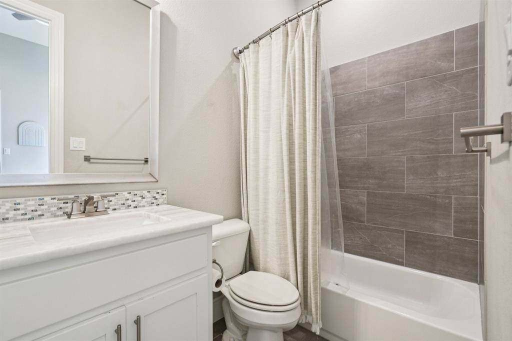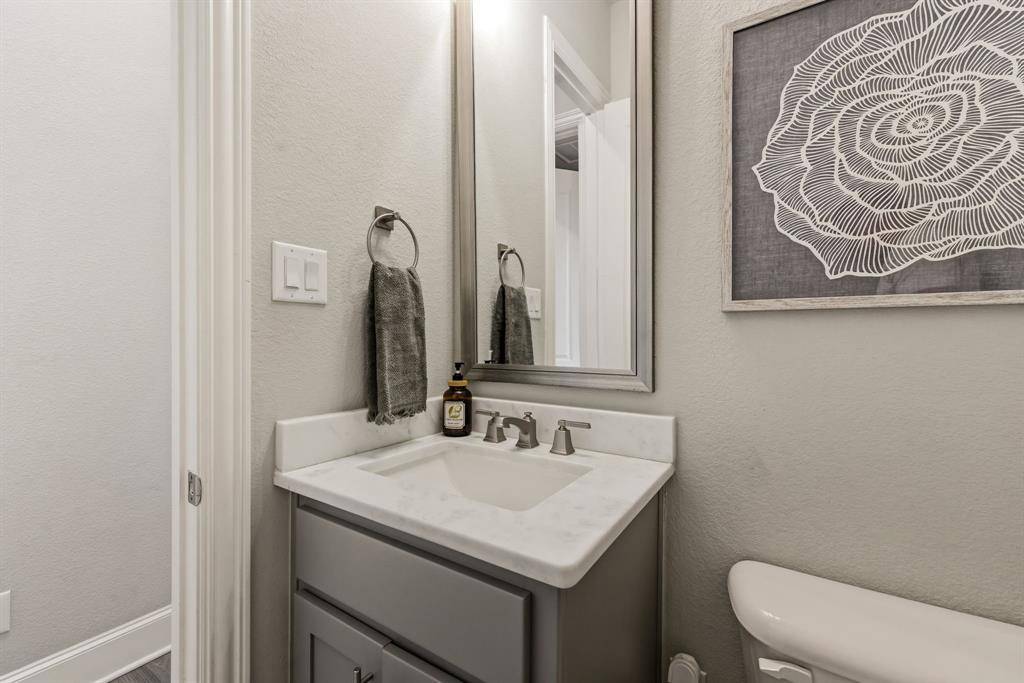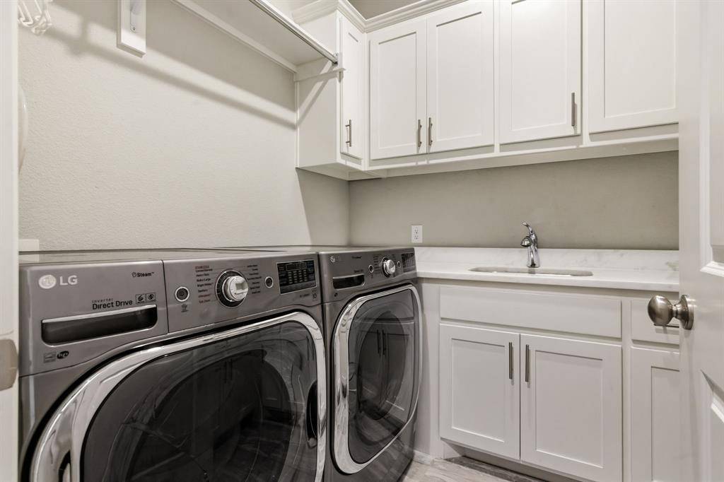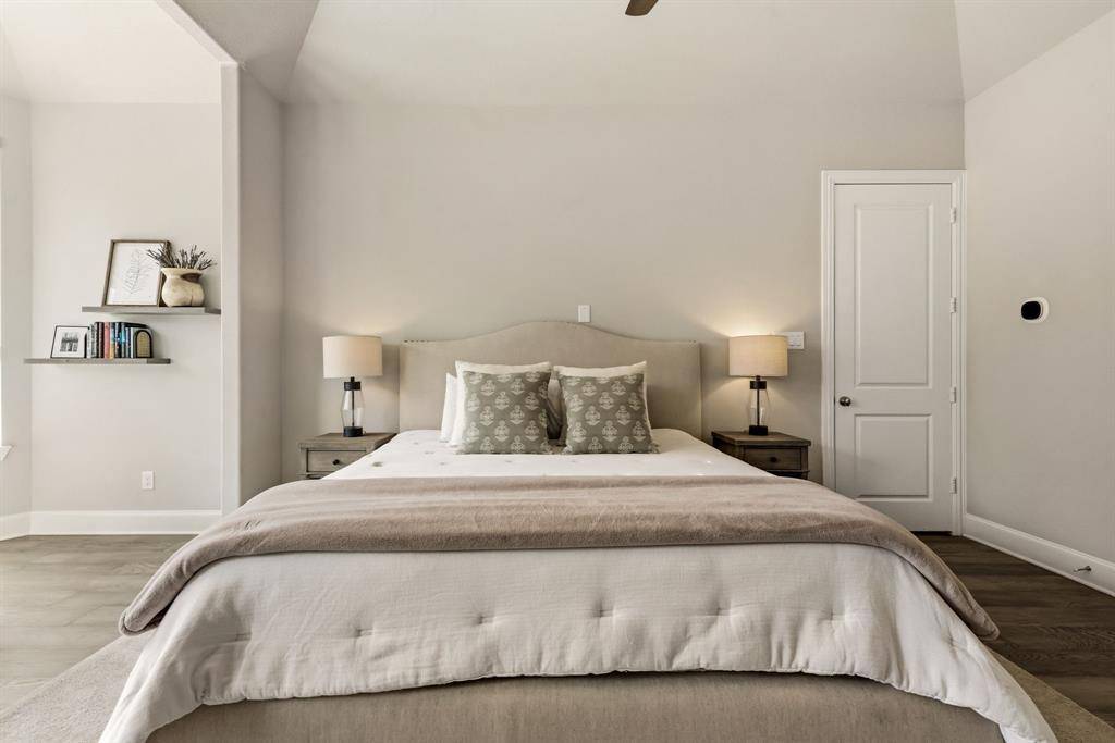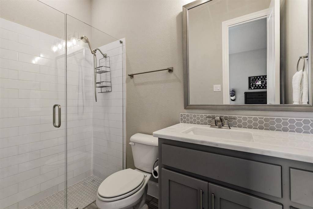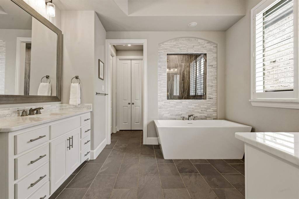 A rare, true one-of-one floor plan by Highland Homes in the highly sought after Edgestone community. This single story design blends thoughtful architecture with a light, breezy aesthetic reminiscent of a refined Pottery Barn style. Offering 4 spacious bedrooms, each with its own en suite bath, the layout is both functional and elevated. The private study features wood beams and soaring ceilings, while the expansive living room is anchored by 19 foot ceilings with exposed beams and seamless flow into the chef's kitchen. Designed for both everyday living and entertaining, the kitchen showcases custom painted Shaker cabinetry, Quartzite countertops, farmhouse sink, built-in refrigerator, 6 burner gas cooktop, double ovens, and an oversized island. Natural light pours into the large dining space, enhanced by built-ins and wraparound windows that create a warm and inviting atmosphere. The primary suite is a true retreat, complete with a bay window sitting area, dual vanities, freestanding soaking tub, oversized walk-in shower, and a generous closet. A flexible bonus space offers the perfect setup for a kids' study area, lounge, or playroom. A dedicated media room adds another layer of functionality for entertaining and everyday enjoyment. All bathrooms are upgraded with Quartzite surfaces, and three secondary suites feature walk-in showers. Step outside to a beautifully designed backyard with a new pool and spa by Riverbend, finished in travertine tile. The covered patio is equipped with a gas line for grilling, creating an ideal setting for outdoor living. An oversized 3+ car garage includes a water softening system and ceiling mounted hanging storage that conveys with the home. Extensive upgrades throughout include wood flooring, designer lighting, and carefully curated finishes. This home truly has it all in a coveted one story, move-in ready and located close to everything Frisco has to offer.