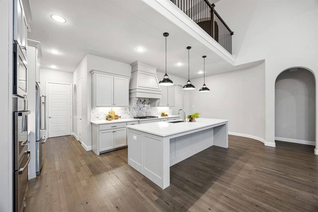 Stunning 2-story Britton Home in the Saddleridge section of Mustang Lakes—Celina's premier master-planned community known for resort-style amenities and top-rated Prosper ISD, zoned to Walnut Grove High School. Located on a quiet street siding to a peaceful pond and just across from a future clubhouse, 2500 Rosecroft offers nearly 4,000 square feet with 4 bedrooms, 4.5 baths, and a 3-car garage. The layout is thoughtfully designed with flexibility in mind. The main level features a spacious primary suite and private guest suite, along with a dedicated study, large dining area, and a front flex room that can function as a second office, formal living, music room, or playroom. Upstairs, enjoy a large game room, oversized media room, and two additional bedrooms, each with its own ensuite bath. The kitchen is the centerpiece of the home, showcasing an oversized island with seating, abundant cabinetry, extensive counter space, and a large walk-in pantry. The open-concept living room features a gas fireplace and sliding glass doors that lead to the covered patio—perfect for indoor-outdoor living. Additional highlights include extensive wood flooring, a spacious laundry room, and a mud bench at the garage entry. Residents of Mustang Lakes enjoy exceptional amenities including a resort-style pool, clubhouse, fitness center, tennis courts, jogging trails, and stocked fishing ponds!