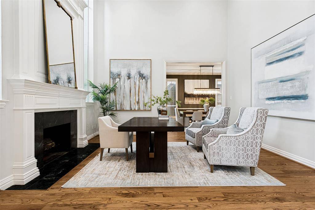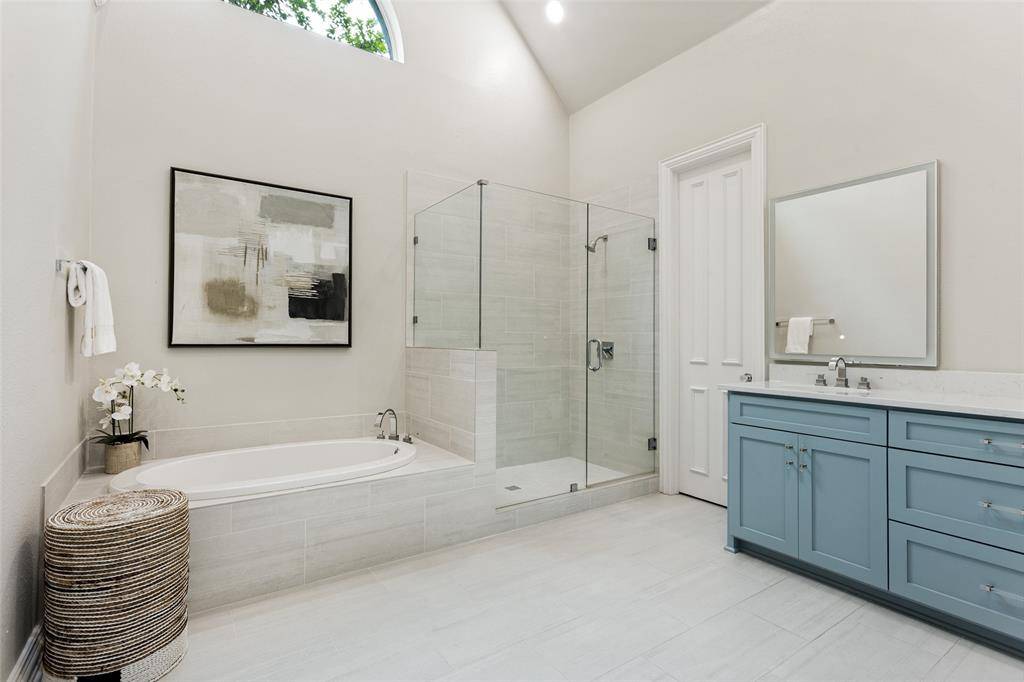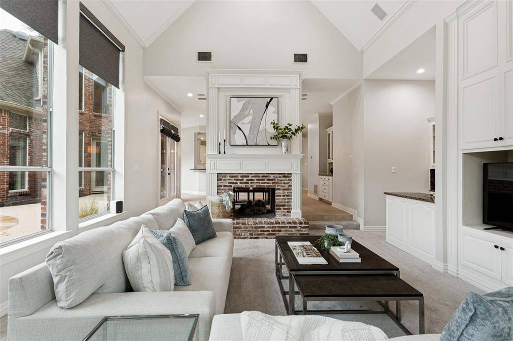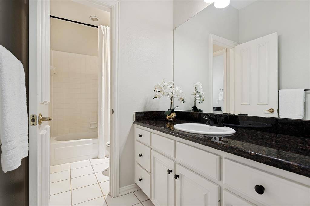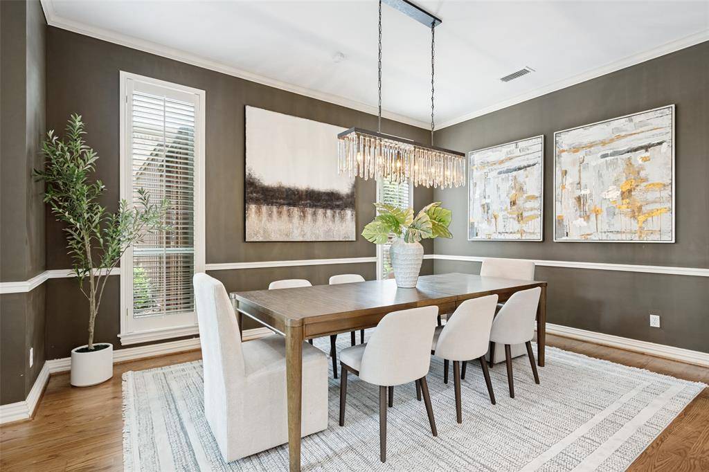 This beautifully updated home with a backyard oasis in the highly sought-after Windhaven Farm community of West Plano is set on a generous quarter-acre lot, just steps away from Windhaven Park and Muhlenbeck Rec Center. The floor plan offers flexibility to fit your lifestyle: the formal dining room can easily serve as a study or home office, while a second living area downstairs provides additional space for relaxation. A striking double-sided fireplace creates a warm, inviting flow that's ideal for entertaining and connects the breakfast area to the family room, where you'll find vaulted ceilings, built-ins and a wet bar. The kitchen has been updated with granite counters, a quartz island and a designer backsplash, plus tons of cabinet space, a butler's pantry, and a new induction cooktop. The private primary suite features wood floors and a cozy sitting area framed by bay windows that overlook the pool, along with a renovated en-suite bathroom that elevates everyday routines with quartz counters, new vanities, a frameless glass shower, LED mirrors and new fixtures. Upstairs are three additional bedrooms, one with the added convenience of its own private en-suite bathroom to provide extra comfort and privacy for visiting family or guests. Outside, the backyard is designed for year round enjoyment with a sparkling saltwater pool and spa surrounded by a board-on-board fence. The newly added side patio is an extended living space, equipped with mounted fans and a heater, speaker and TV wiring and a TV mount. Practical upgrades add peace of mind including Low-E windows, motorized designer shades, electric driveway gate, new AC system upstairs in 2023, new roof in 2023 and new gutters in 2025. Located within walking distance to Plano ISD elementary and middle schools and in an unbeatable location close to major employers, shopping, and dining, this home combines everyday convenience with elevated comfort.