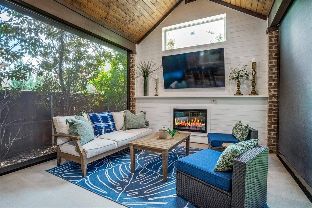 At the heart of the home, the inviting open-concept living space features a stunning kitchen with abundant counter space, extensive cabinetry, oversized dining area, and a built-in coffee bar. The seamless indoor-outdoor flow continues to an extended covered patio complete with automatic screens, cathedral ceiling, and electric fireplace, creating a true year-round entertaining retreat.
