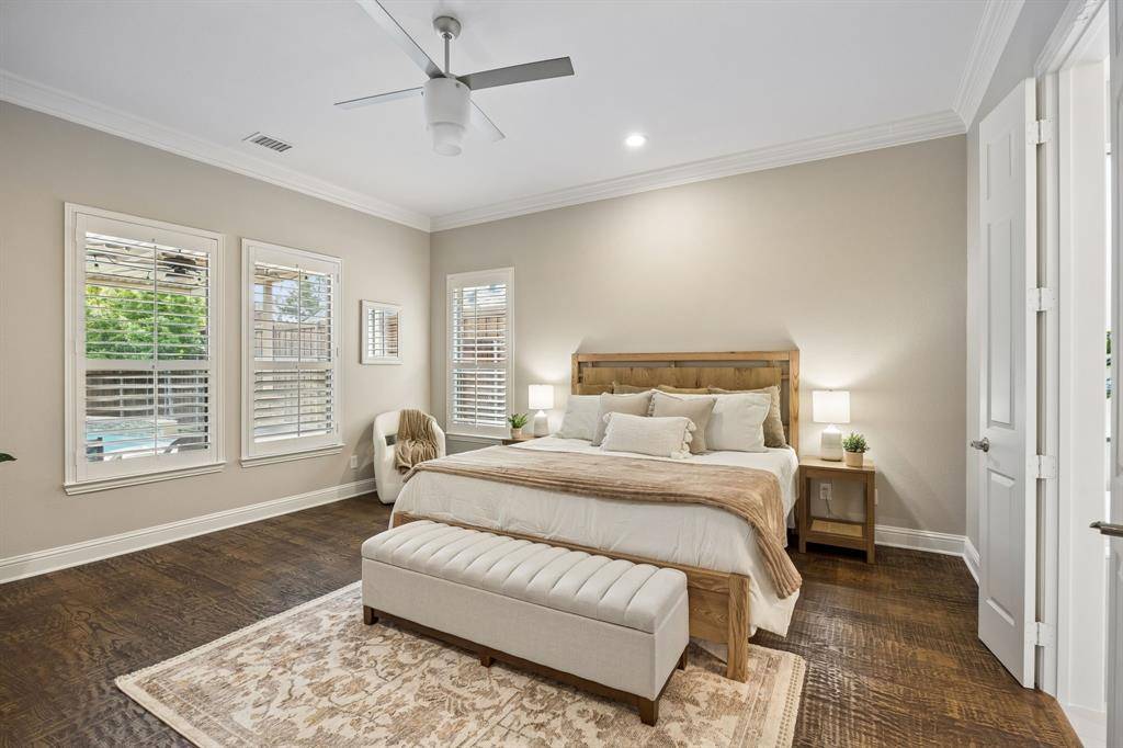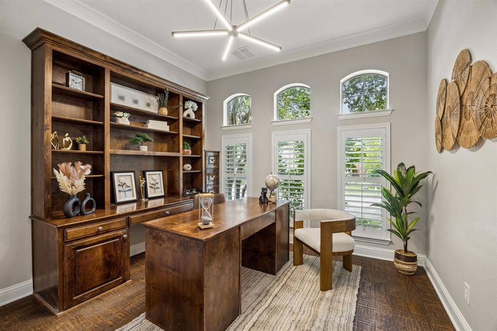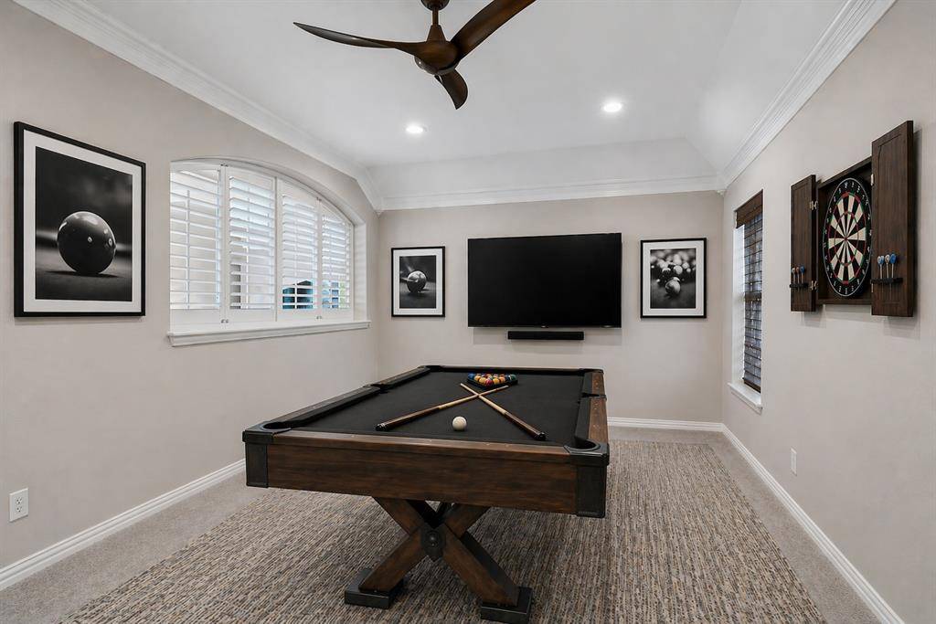 The spacious layout of this home includes a dedicated office and primary suite downstairs. The primary suite serves as a luxurious retreat with a gorgeous, completely renovated bathroom you won't want to leave! Dedicated office features French doors as well as built-in shelving and cabinets. Upstairs you will find 3 generously sized bedrooms all with walk-in closets, 2 beautifully renovated bathrooms, a dedicated game room and media room.
